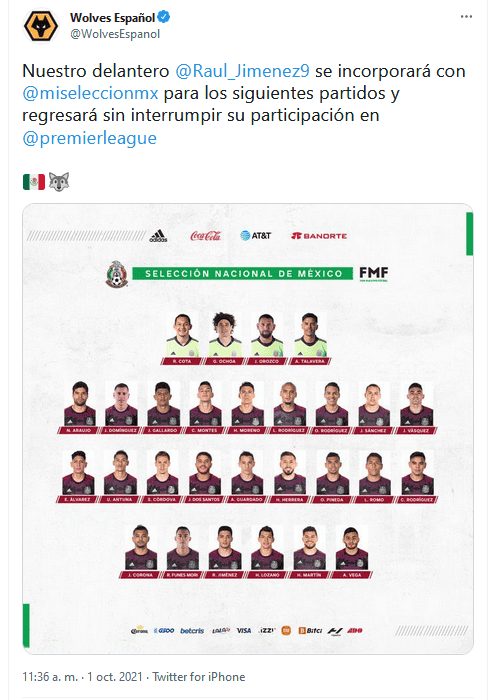 Este viernes 1 de octubre, el gobierno británico y las autoridades del futbol inglés llegaron a un acuerdo para que los jugadores vacunados puedan viajar a los países de la lista roja por COVID-19, y además, para que no tengan que hacer cuarentena cuando regresen al Reino Unido. Esto beneficia a la Selección Mexicana, ya que así, le otorgan permiso al delantero del Wolverhampton Raúl Jiménez para jugar con el Tricolor.Ayer, la Selección Mexicana dio a conocer la lista de convocados por el técnico Gerardo "Tata" Martino a los partidos de la eliminatoria mundialista, entre los que aparece Jiménez. Existía la duda de si el ex jugador del América recibiría autorización para viajar con motivo de la Fecha FIFA de octubre, pero el Wolverhampton publicó en sus redes sociales que "Nuestro delantero @Raul_Jimenez9 se incorporará con @miseleccionmx para los siguientes partidos y regresará sin interrumpir su participación en @premierleague".Jiménez jugó por última vez con la Selección Mexicana en noviembre del año pasado, semanas antes de sufrir una grave lesión en el cráneo que lo mantuvo alejado de las canchas por varios meses.La Selección Mexicana jugará partidos de eliminatoria mundialista la próxima semana contra Canadá, Honduras y El Salvador.Este viernes se dio a conocer que los jugadores de la Premier League que hayan sido vacunados sí podrán viajar a los países de la lista roja por COVID-19 del Reino Unido. Sin embargo, aunque no tendrán que hacer cuarentena, deberán confinarse en un hotel por 10 días, y solo podrán salir una vez cada jornada para entrenar o jugar."Nuestra mejor defensa contra el virus es la vacunación y estas medidas permitirán que los que han recibido las dos dosis puedan viajar a cumplir sus compromisos internacionales de la forma más segura posible, permitiéndoles, además, entrenar y jugar con sus compañeros a la vuelta", dijo un vocero del gobierno británico.Con estas medidas, la Premier League busca terminar con la polémica que surgió en la anterior fecha, cuando varias federaciones protestaron y amenazaron con denunciar ante la FIFA, ya que los equipos ingleses no prestaron a los jugadores para los partidos.¿Quieres saber más?Si quieres tener más contenido, más imágenes y aún más noticias, entonces descarga INFORMAPlus, la aplicación digital de EL INFORMADOR, donde tenemos materiales exclusivos para ti.Descarga la aplicación y pruébala GRATIS por treinta días.Si eres suscriptor de EL INFORMADOR tu acceso está incluido, solicítalo al 33 3678-7777OF