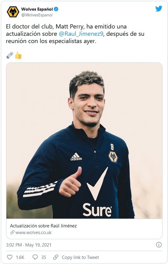 El mexicano Raúl Jiménez recibió el alta médica para regresar a la actividad con el Wolverhampton, pero será en cuanto arranque la próxima temporada en la Premier League. Todavía no es segura su participación con la Selección Nacional para la agenda de este verano.“Raúl se lesionó seriamente hace seis meses, el 29 de noviembre, y fue sometido a una cirugía por un severo trauma cerebral y fractura de cráneo en el Hospital St. Mary’s Paddington. Desde entonces, ha estado bajo cuidados y supervisión de su neurocirujano en St.Mary’s, Sophie Camp y el profesor Tony Belly del hospital Queen Elizabeth Hospital de Birmingham, así como el equipo médico de los Wolves en Compton”, comunicó Matt Perry, médico del club inglés.“La fase de rehabilitación para participar en un partido con el equipo comenzará en el mes de julio y tendrá un control estricto en un principio. Esto responde al hecho de que, aunque su recuperación parece ser total, todavía existe un enorme paso entre el entrenamiento y la competencia”, subrayó.En el informe médico, publicado por el mismo club, añadió que la fractura de cráneo ha sanado completamente; usará una protección en la cabeza para reforzar el área de hueso dañado por el resto de su carrera, pero tiene la fuerza necesaria para regresar a jugar sin la protección.“Una lesión cerebral, como una conmoción, puede tomar semanas o meses en recuperarse al cien por ciento y el trauma cerebral puede dejar déficit a largo plazo. Nos es grato poder asegurar, que Raúl ha tenido una recuperación sobresaliente y excelente hasta el momento. No tiene signos notorios de alguna repercusión y se encuentra en la etapa en la que podemos contemplar el regreso a la carrera que ama con un grado de precaución requerida”, se lee en el comunicado.En la campaña 2020-21, antes de su fractura, Raúl disputó 10 partidos en la Premier League y marcó tres goles.JM