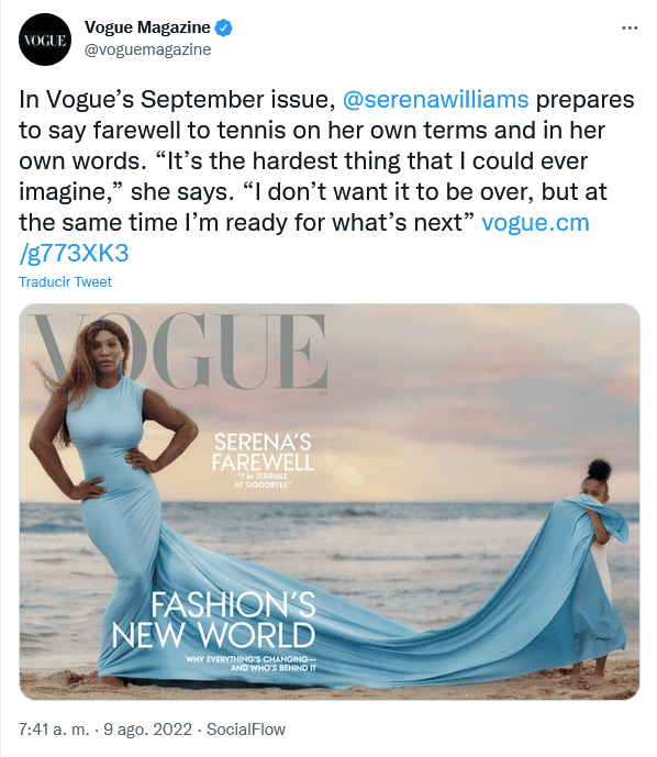 Este martes, la estadounidense Serena Williams anunció su retiro del tenis.En una emotiva carta escrita en primera persona para la revista Vogue, la ganadora de 23 títulos de Grand Slam insinúa que el US Open 2022 será el último de su carrera. "Es la decisión más dura que jamás imaginé", dice.En el texto, Serena Williams dice que está lista para dejar el tenis, tener otro hijo, y dedicarse a los negocios."Nunca quise tener que elegir entre el tenis y una familia, no creo que sea justo. Si fuera un hombre, no estaría escribiendo esto porque estaría jugando y ganando mientras mi esposa hace el trabajo físico de expandir nuestra familia. Tal vez sería más como Tom Brady si tuviera esa oportunidad. No me malinterpreten: amo ser mujer, y amé cada segundo de estar embarazada de Olympia"."Cumplo 41 años este mes y hay que dejar algunas cosas de lado", escribió."Tengo que concentrarme en ser madre, mis metas espirituales y, finalmente, descubrir una Serena diferente, pero emocionante. Voy a disfrutar estas próximas semanas", subrayó.La tenista, que compite estos días en el Masters de Canadá, explicó que no le gusta utilizar la palabra "retiro" y que ha pensado en esta "transición" a la que prefiere describir como "evolución".Ayer, Serena Williams ganó su primer partido en 430 días al superar por 6-3 y 6-4 a la española Nuria Párrizas Díaz.OF