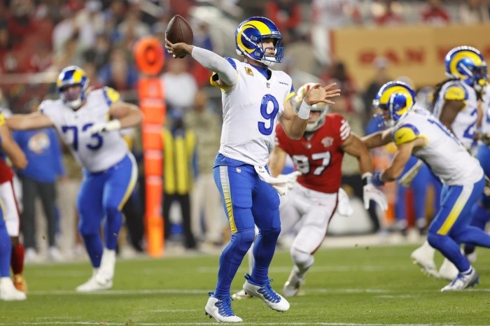 El Super Bowl LVI está cada vez más cerca de disputarse entre los Cincinnati Bengals y Los Angeles Rams en el SoFi Stadium, un duelo que enfrentará a un joven Quarterback que no se achicó ante Patrick Mahomes y a otro que ya eliminó a Tom Brady en su camino. Matthew Stafford consiguió su boleto al Super Bowl con Los Angeles Rams tras derrotar en un duelo muy apretado a San Francisco 49ers. La dupla que ha formado con Cooper Kupp permite soñar al equipo californiano con levantar el trofeo Lombardi en su propia casa, el SoFi Stadium, pero, para hacerlo, deberá doblegar a unos Cincinnati Bengals que con Joe Burrow aspiran a cerrar con broche de oro su temporada. John Matthew Stafford nacido en Tampa, Florida un 7 de febrero de 1988, es el Quarterback estrella de Los Angeles Rams de la NFL. Seleccionado en 2009 por Detroit Lions, en 12 años solamente pudo guiar al equipo en tres ocasiones a los Playoffs de la NFL y en ninguna de ellas fue capaz de conseguir un solo triunfo. El nivel de Matthew Stafford nunca ha sido puesto en duda y más bien los cuestionamientos han llegado por el equipo al que "lamentablemente" para su carrera como profesional estaba ligado. Pero en 2021 cambió a Detroit por Los Angeles Rams y está viviendo su redención tras clasificarse al Super Bowl LVI. Desde el día uno, Matthew Stafford tenía los reflectores encima. ¿El objetivo? Llevar a Los Angeles Rams a disputar el Super Bowl en su casa, el SoFi Stadium. Pero nadie se imaginaría como lo hizo. Paso a paso. Partido a partido. Su primer rival, Arizona Cardenals fue un simple espectador de lo que Stafford y compañía podían hacer. Por el pase a la Ronda Divisional, los Rams aplastaron 37-10 al conjunto de Arizona. A pesar de la convincente victoria, el siguiente rival sería etiquetado como favorito: el vigente campeón, Tampa Bay Buccaneers de Tom Brady. Superar en el campo a una leyenda no sería fácil, aunque en los dos primeros episodios hayan hecho parecer que sí. Los Angeles Rams se quedaron a punto de dejar escapar una ventaja de 24 puntos ante Tampa Bay. Finalmente se llevaron la victoria por 30-27 en la última jugada del partido. Matthew Stafford tal vez haya aprendido la lección y aunque se le vio más precavido de lo habitual, en la Final de la Conferencia Nacional también selló la victoria 20-17 ante San Francisco 49ers, en un nuevo capítulo sombrío en la carrera de Jimmy Garoppolo. Ahora, el próximo 13 de febrero, en su casa, el SoFi Stadium, Stafford intentará culminar su redención con 34 años, intentando conseguir su primer anillo de Super Bowl ante Joe Burrow y Cincinnati Bengals. JL