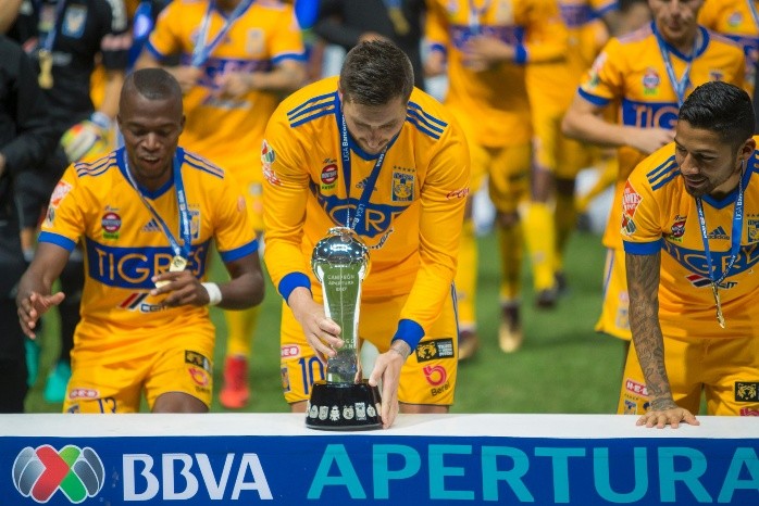 Tigres se coronó campeón del Apertura 2017 imponiéndose por 2-1 (3-2) a Monterrey, en la primera final que se disputa entre esos dos equipos, acérrimos rivales.Los de la UANL sumaron en casa de la Pandilla su sexto título tras los trofeos obtenidos en la temporada 1977-1978, 1981-1982, Apertura 2011, Apertura 2015 y Apertura 2016.Se trata de la tercera final consecutiva para los felinos, que perdieron ante Chivas el duelo por el cetro del Clausura 2017 el pasado mes de mayo.Monterrey inició poniéndose en ventaja al minuto uno con un gol de Pabón, pero Tigres supo reaccionar y remontó con tantos de Vargas al 30' y de Meza al 34'.Los locales tuvieron la mesa puesta para igualar el marcador, pero Hurtado, uno de los mejores jugadores de Rayados durante el torneo, erró un penalti hacia el final del partido.La Pandilla terminó el compromiso jugando con un hombre menos por la expulsión de Neri Cardozo en tiempo añadido.El partido de ida, jugado el pasado jueves 7 de diciembre en el estadio de Tigres, terminó igualado 1-1 con goles de Nicolás Sánchez al 8' por Monterrey y Enner Valencia al 26' por Tigres.Los dos equipos llegaron al duelo de vuelta disminuidos en sus respectivas defensas. En la ida Ayala, de Tigres, fue expulsado, así como Vangioni, de Monterrey.El lugar de Vangioni en la lateral izquierda de Rayados fue cubierto por Basanta, mientras Meza ocupó el puesto de Ayala en la central de Tigres. El colombiano, que jugó sólo cinco partidos como titular durante la fase regular, terminó siendo un elemento fundamental para el triunfo de la UANL.Si en el primer capítulo Monterrey se puso en ventaja al minuto 8, en la vuelta la Pandilla fue todavía más efectiva y abrió el marcador con apenas un minuto de juego.Montes puso un trazo largo que Funes Mori bajó de pecho para que Pabón anotara con un tiro raso desde afuera del área. Mientras los aficionados todavía se acomodaban en los asientos del estadio, los Rayados ya estaban en ventaja.Los locales se frotaban las manos pensando en la posibilidad de explotar su poderoso contragolpe, pero Tigres trabajó el partido, remando con paciencia contra la corriente.Rodríguez con ataques por derecha y Aquino con imaginación por la izquierda mantuvieron izada la bandera de la UANL durante el momento de dificultad, pero al igualada llegó gracias a un disparo raso del chileno Vargas, que anotó al 30' desde la media luna del área de Tigres.La remontada de los felinos se concretó apenas cuatro minutos más tarde. En una jugada derivada de tiro de esquina, Meza, que jugó en sustitución de Ayala, anotó de cabeza el 2-1 (3-2 global) a favor de los universitarios.En el segundo tiempo Rayados se lanzó al frente, pero no encontró la contundencia que tuvo durante todo el torneo. Monterrey tuvo en el puño el empate, pero Hurtado falló desde los once pasos un penalti cometido sobre Benítez.Desmoralizados por el penalti fallado, los jugadores de Rayados se vieron invadidos por la impotencia, que quedó simbolizada por el arrebato de Neri Cardozo, que vio la tarjeta roja directa al 90+5' tras propinar una artera patada a Javier Aquino.El recuento de los daños para los Rayados es más amargo todavía porque se trata de la segunda final que pierden en su nuevo estadio. En el 2016 la Pandilla dejó escapar ante Pachuca el título del torneo del Clausura con un gol de último minuto de Víctor Guzmán. En aquella ocasión Edwin Cardona, que era su estrella en la delantera, falló un penalti, tal como Hurtado hizo esta noche.ALINEACIONESMONTERREY: González, Montes, Sánchez, Basanta (Fuentes, 45'), Medina, C. Sánchez (Zavala, 87'), Cardozo, J. González (Benítez, 79'), Funes Mori, Pabón, Hurtado. D.T.: MohamedTIGRES: Guzmán, Juninho, Torres Nilo, Meza, Rodríguez, De Souza, Aquino, Dueñas (Acosta, 79'), Vargas (Damm, 60'), Gignac, Valencia (Sosa, 75'). D.T.: FerrettiÁRBITRO: Fernando Guerrero RamírezLS