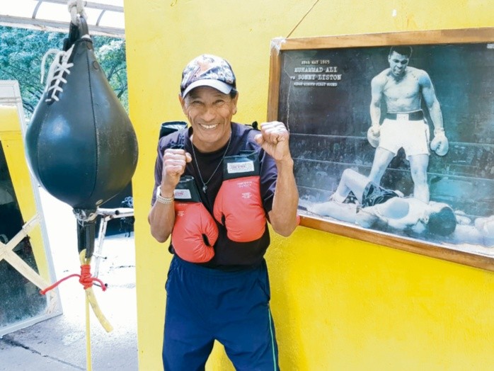 Los años ya han pasado por él, y aunque se conserva en buenas condiciones, es evidente que le cuesta trabajo utilizar las manoplas y aguantar los rectos, uppers y volados que le lanzan sus alumnos, los cuales, dicho sea de paso, están varias divisiones arriba de él.