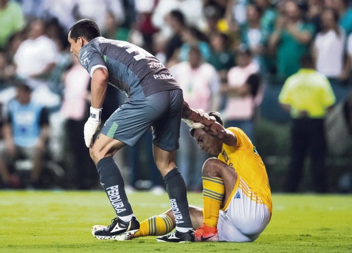 Con una gran exhibición defensiva, aguantando el vendaval verde del León desde los primeros minutos, los Tigres de la UANL defendieron el marcador, sacaron el empate 0-0 y eso les bastó para conseguir su séptima corona del futbol mexicano, toda vez que el global terminó 1-0, luego del triunfo en el partido de Ida con el gol de André-Pierre Gignac.Un partido de Vuelta que fue poco lucido, en donde León buscó a toda costa el gol que les diera por lo menos el empate y mandar las acciones a tiempo extra, sin embargo la estrategia defensiva de Ricardo “Tuca” Ferretti fue suficiente para que los zagueros felinos se disfrazaran de héroes al rechazar cuanto balón se aproximaba al último sector del terreno de juego.Sin embargo, fue Nahuel Guzmán quien sacó la casta, al convertirse en la figura del encuentro al detener al menos tres opciones claras que generó Rubens Sambueza, así como Joel Campbell y Jean Meneses, quienes no pudieron superar al arquero argentino, que fiel a su estilo, le supo poner hielo a las acciones.Aunque meritorio, el de los Tigres es un título que careció de brillo ofensivo, ya que solamente hicieron cuatro goles en toda la Liguilla, es decir, le hicieron dos a Pachuca en Cuartos de Final, uno a Rayados en Semifinales y uno a León en la Final de Ida, por lo que aplicaron la de “No hay que llegar primero, sino que hay que saber llegar”, y hoy por hoy son campeones del futbol mexicano, con su quinto título en la década.León, por su parte, se quedó con las ganas de coronar una gran campaña en la que terminaron como líderes generales, fueron el equipo más goleador en todo el torneo, tuvieron la mejor defensa y presumían al campeón goleador, pero esto de nada sirvió, ya que el título se les esfumó y para colmo, al final del partido, con la desesperación que significaba la derrota, Andrés Mosquera se fue expulsado.Para La Fiera pesó la ausencia de varios jugadores para esta serie final, tanto en la Ida como en la Vuelta. El hecho de que José Juan Macías no pudo estar porque disputa el Mundial Sub-20 en Polonia, así como la suspensión de Rubens Sambueza en la Ida y la lesión de Ángel Mena en el primer tiempo de la Vuelta, terminaron por afectar a los Esmeraldas, que vieron cómo la oportunidad de coronarse en su casa no se materializaba.Entre lágrimas y con la angustia de todo León encima, Ángel Mena no pudo seguir, debido a una lesión muscular, entrando en su lugar Jean Meneses. A raíz de esto, los Panzas Verdes dejaron de ser peligrosos en el resto de la primera mitad y le cedieron el control de las acciones a los Tigres.A pesar de que no había sido exigido en lo que iba de encuentro, el arquero de León, Rodolfo Cota, evitó la caída de su marco en una buena acción mano a mano con Eduardo Vargas. El mexicano aguantó y detuvo el disparo que le daba vida a los Esmeraldas para poder aspirar a igualar.Con el título obtenido ayer, Ricardo “Tuca” Ferretti empató a Ignacio Trelles como máximo ganador de títulos en el futbol mexicano con siete. El brasileño ha salido campeón con Chivas, Pumas y Tigres, erigiéndose como uno de los mejores entrenadores del futbol mexicano.30. Rodolfo Cota, 5. Fernando Navarro, 4. Andrés Mosquera, 23. Ramiro González, 6. William Tesillo, 13. Ángel Mena, 10. Luis Montes, 12. Iván Rodríguez, 11. Yairo Moreno, 14. Rubens Sambueza, 8. Joel Campbell, DT. Ignacio Ambriz.Cambios1. Nahuel Guzmán, 28. Luis Rodríguez, 4. Hugo Ayala, 21. Francisco Meza, 6. Jorge Torres, 20. Javier Aquino, 5. Rafael De Souza, 19. Guido Pizarro, 26. Luis Quiñones, 9. Eduardo Vargas, 10. André-Pierre Gignac, DT. Ricardo Ferretti.CambiosÁrbitro: César Arturo Ramos.Sede: Estadio León.
