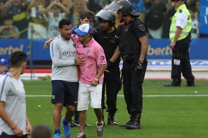 Al grito de "dale dale Booo, queremos la copa", miles de hinchas de Boca Juniors colmaron el estadio La Bombonera este jueves para alentar a los jugadores durante una práctica a dos días del histórico clásico ante su archirrival River Plate por la final de la Copa Libertadores.Es la primera vez que este emblemático escenario deportivo abre sus puertas al público para un entrenamiento. La decisión de hacerlo responde a la imposibilidad de los hinchas boquenses de asistir el sábado al estadio Monumental.Los dos gigantes del fútbol argentino, que por primera vez definirán un título continental, acordaron disputar la serie de dos partidos sólo con público local, en sintonía con la prohibición de visitantes que rige en el fútbol argentino desde 2013, aunque con algunas excepciones.Bajo la consigna "Jugamos Todos", Boca lanzó la convocatoria a sus hinchas para apoyar al equipo dirigido por Guillermo Barros Schelotto y aquellos respondieron de a miles pese a la lluvia que caía sobre la capital argentina y que el evento coincidía con horario laboral.Como el acceso era gratuito y permitido al público en general "no restringido para socios, como sucede en los partidos oficiales" los fanáticos superaron en número la capacidad del estadio (50 mil personas), por lo cual debieron cerrar los accesos una hora antes del inicio de la práctica.Varios cientos que quedaron a afuera intentaron ingresar por la fuerza, pero la policía los repelió con gases lacrimógenos."Nuestras disculpas a todos los que no van a poder entrar, pero somos tantos millones. Gracias. Esto es Boca", escribió el club en su cuenta oficial de Twitter.Si no hubiera sido por la presencia de cuatro arcos en el campo de juego, el clima en la Bombonera fue similar al de un partido por el campeonato. La hinchada ovacionó la salida del equipo al campo de juego, con el capitán Fernando Gago a la cabeza.Los jugadores, vestidos con ropa de entrenamiento, se pararon en el círculo central y saludaron con los brazos en alto. Luego empezó el precalentamiento con un ejercicio que consistía en pararse en ronda y un futbolista en el medio que debía recuperar el balón que se pasaban entre sí sus compañA los pocos minutos, un hincha saltó al campo de juego con la intención de saludar a los jugadores, pero fue detenido por la policía. Carlos Tevez, el capitán sin cinta que pelea por un lugar en el once titular, lo fue a buscar, le dio un abrazo y le regaló su sudadera.El entrenamiento, que continuó con fútbol en espacio reducido, no dejó pistas del equipo que jugará el sábado.Se mantiene la duda en el arco entre Agustín Rossi, figura en el 2-2 del partido de ida jugado hace dos semanas, o Esteban Andrada, titular hasta que sufrió una rotura de mandíbula en cuartos de final ante Cruzeiro y ya está recuperado.La otra incógnita está en ataque con el reemplazante de Cristian Pavón, baja por un desgarro. Tevez, el colombiano Edwin Cardona y Mauro Zárate pelean un puesto.Boca busca ganar la séptima Libertadores de su historia, mientras River la cuarta. De mantenerse la igualdad después de 90 minutos, jugarán un alargue de 30 minutos. Si no hay un vencedor, el trofeo se definirá por tiros desde el punto de penal.Después de una hora, los jugadores de Boca dieron la vuelta alrededor de la cancha para agradecer el apoyo y la hinchada los despidió al grito de "en la cancha de River vamos a ganar y la vuelta, la vuelta vamos a dar". RR