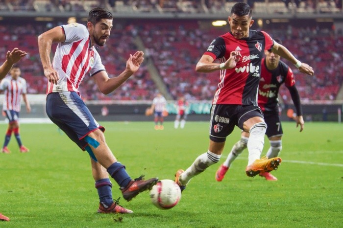 El Clásico Tapatío fue un reflejo de lo que ocurre en Atlas y todo lo que no pasó en el Guadalajara.Los rojinegros fueron al Estadio Chivas a dejarse la piel en aras de mantener el boleto a la Liguilla. Los rojiblancos salieron a cumplir el compromiso y regalaron, como en casi todo el torneo, el primer tiempo.Bajo ese esquema de partido, no es complicado saber qué pasó. Atlas ganó 2-1 el duelo y se mantiene en zona de clasificación con 24 puntos, dependiendo de sus propios resultados. Chivas, con 15 unidades, concreta su gran ridículo en la campaña de la defensa de su título.Polos opuestosDe entrada, José Guadalupe Cruz aprendió la lección de sus dos últimas visitas al Estadio Chivas.Así, lejos de volver a mandar un equipo timorato, el “Profe” repitió el cuadro que a media semana empató con Tigres con una orden terminante: arrebatar la pelota al rival y apretarlo intensamente desde la salida.Matías Almeyda por su parte, eliminado de la Copa, regresó a sus estelares a jugar la Liga y puso a lo mejor que tenía en el Clásico.La diferencia se estableció de inmediato: Chivas salió pensando en las vacaciones, Atlas en mantener con el cuchillo entre los dientes su puesto de Liguilla.Luego de dominar al rival desde el arranque, el Atlas reflejó en el marcador su superioridad cuando Caraglio mandó a guardar una diagonal por izquierda de Garnica. El argentino no le pegó bien al esférico, que salió cruzado y terminó entrando lentamente a segundo poste para el 1-0.Poco o nada hizo Chivas por modificar las cosas en el primer tiempo y así se fueron al descanso.No alcanzóEn el complemento Almeyda mandó a la cancha a Macías y a Brizuela por un apático Eduardo López y un errático Carlos Fierro.La mejora se notó de inmediato y Chivas daba sensación de peligro permanente.Cuando mejor jugaba el Rebaño, Tabó escapó por izquierda y al entrar al área Jesús Sánchez lo traba, para el penalti indiscutible que cambió por gol el eficaz Milton Caraglio, para el 2-0.Chivas volvió a lo suyo y repitió esquemas de toda la campaña: llegó, pero no concretó.Ocurrió al 76’ con Zaldívar y al 83’ con Pizarro. Cuando Rodolfo anotó en un tiro donde falla Fraga en tiempo de compensación, ya era muy tarde.Chivas concretó su periodo vacacional. Atlas tiene todo por calificar en la última jornada.LAS CIFRAS ¿Y el balón? Al minuto 58 llegó la jugada que sentenció el juego y es hasta de risa. En contragolpe, Christian Tabó escapa por izquierda y antes de entrar al área hace una finta donde el esférico se le queda atrás. El uruguayo intenta entrar al área, pero el esférico no lo acompaña y de todos modos el “Chapito” Sanchez lo toca para que se marque el penalti que trajo el 2-0.Nunca llegó Al minuto 76, con Guadalajara presionado al rival y encerrándolo poco a poco, llega la jugada grande por izquierda donde una diagonal retrasada y con un rebote le queda a modo a Ángel Zaldívar para meter el primero de Chivas y liquidar a Fraga. El “Chelo”, como en todo el torneo, impacta mal la pelota y la regala al arquero.No iba a entrar De nueva cuenta la velocidad del Rebaño es veneno para la zaga visitante. Por derecha Macías localiza en un gran servicio la entrada de Pizarro a quien le da el esférico. Rodolfo decide rápido y tira a la media vuelta. La pelota, lentamente, se va demasiado cruzada para terminar fuera.LOS CONTRASTES Jaime García Elías (Columnista)Era el Clásico del orgullo. Ganarlo, hacerlo como visitante y seguir en la pelea por entrar a la Liguilla, casi salva la campaña del Atlas. Perder, hacerlo como local, exhibir su impotencia y hundirse en la parte baja de la tabla, confirmó que este Guadalajara es una triste caricatura del campeón del torneo anterior.Dos desbordes Arturo Pacheco (Analista)Un par de desbordes definieron el duelo, uno contra uno por punta izquierda atlista y zaga derecha rojiblanca en las que el desequilibrio individual premió la mayor entrega y concentración colectiva rojinegra. Enorme partido de Caraglio y Rafa Márquez. En Chivas, de nuevo pesan demasiado las malas decisiones de cara a gol.