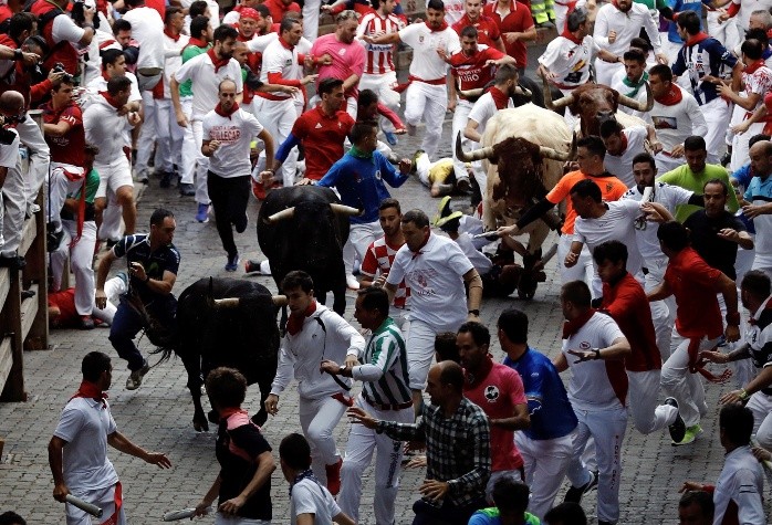 Los toros protagonizaron hoy un encierro veloz y limpio en el sexto día de los Sanfermines, sin que se produjera ningún herido por hasta entre los corredores, aunque sí uno con traumatismo craneoencefálico y otro con contusiones.Las reses, de la ganadería madrileña de Victoriano del Río Cortés, salieron de los corrales a las 8:00 horas en punto (6:00 GMT) y realizaron el recorrido hasta la plaza de toros en dos minutos y veinte segundos, acompañados por la lluvia.La manada estuvo liderada en gran parte del recorrido por dos toros negros y cerrada por un castaño que, aunque se separó en algunos momentos de sus hermanos, no llegó a quedarse descolgado.Con una menor presencia de corredores, se vivieron algunos momentos de tensión en dos lugares emblemáticos del recorrido: la curva de la Estafeta y en Telefónica.Los bravos, acompañados de los cabestros salieron agrupados, aunque a lo largo del recorrido un toro comenzó a quedarse rezagado.El grupo atravesó con velocidad la plaza del ayuntamiento, cruzó la calle Mercaderes y se dirigió hacia la curva de Estafeta, donde algunos corredores quedaron atrapados entre la pared y los toros.La torada se fue estirando, abriendo huecos entre los astados, que a más de un mozo golpearon con la frente haciéndoles caer al suelo.En Telefónica un victoriano resbaló y se repitieron las caídas de los corredores, que provocaron momentos de peligro y de tensión, al igual que en el callejón de acceso a la plaza, donde otro de los morlacos se acercó al vallado derecho pasando sus cuernos junto a la cara de un corredor.En los últimos metros, el grupo se dividió en dos y así entraron de tres en tres en el coso, donde se dirigieron a los chiqueros sin problemas.