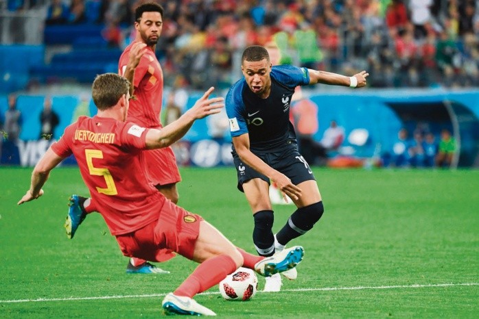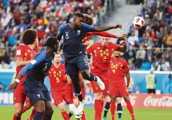 Con reminiscencias del título que conquistó hace 20 años y merced a un cabezazo letal de Samuel Umtiti en los albores del segundo tiempo, Francia hizo valer su jerarquía al sellar el pasaporte a la tercera Final de su historia en la Copa del Mundo, al imponerse ayer 1-0 a Bélgica.En un saque de esquina ejecutado por Antoine Griezmann a los 50 minutos, Umtiti consiguió anticiparse a Marouane Fellaini, custodio del primer palo. El zaguero del Barcelona saltó y le remató en las narices al arquero Thibaut Courtois.Y por enésima vez en este Mundial, una jugada a pelota detenida resultó crucial. Esta vez definió a un finalista, y Francia chocará el domingo por el título en Moscú con Inglaterra o Croacia, que se miden hoy en dicha ciudad.El hecho de que Umtiti le haya ganado en el salto al centrocampista del Manchester United llamó más la atención por la diferencia de estatura entre ambos. El primero mide 1.83 metros y el segundo 1.94.Además, después de tanto que se habló de la mina de talento del que dispone Francia adelante, fue un defensa el héroe. En 1998, tres zagueros franceses anotaron en el Mundial: Bixente Lizarazu, Laurent Blanc y Lillian Thuram. En una coincidencia auspiciosa, ahora han marcado Benjamin Pavard, Raphael Varane y Umtiti.En busca de instalar a los belgas en la primera Final mundialista de su historia, el español Roberto Martínez tomó la arriesgada decisión de colocar de inicio una línea de tres defensores para enfrentar a uno de los equipos con más talentos individuales en este certamen. Y los Diablos Rojos generaron peligro en la primera mitad con dos disparos de Eden Hazard y un zurdazo de Toby Alderweireld desde las inmediaciones del área, que el arquero francés Hugo Lloris desvió de manera providencial con las dos manos.Francia apostó más de inicio a la contra y amenazó con disparos de Griezmann y escapadas de Kylian Mbappé, la sensación francesa de 19 años.El tanto francés no hizo sino radicalizar las respectivas estrategias. Abofeteados, los Diablos Rojos se lanzaron en forma desbocada en busca del empate. Les Bleus, se organizaron mejor atrás y apostaron a alguna transición rápida que les permitiera ampliar el marcador.En su primera Final, Francia aplastó 3-0 a Brasil en casa, en 1998. Ocho años después, el equipo galo caía en penales ante Italia, en un juego más recordado por el cabezazo de Zinedine Zidane.Ahora vendrá el deseo de reivindicación de la escuadra francesa. El rival está por verse.San Petersburgo/APLa táctica fija Comenzaba el segundo tiempo, Francia trataba de ir hacia el frente, cuando consiguió un tiro de esquina al minuto 50. Griezmann tomó el balón, sacó un servicio formidable y Samuel Umtiti (#5) se impuso con la cabeza para darle el triunfo al equipo galo con un cabezazo que no pudo ser atajado.Magia juvenil Con el dominio de las acciones, el equipo francés demostró de lo que es capaz y al 55’ se quedó cerca de anotar un formidable tanto. Blaise Matuidi pisó el área belga, cedió para Kylian Mbappé, quien pisó el esférico con los dos pies y con una jugada de fantasía habilitó a Oliver Giroud, pero el arquero alcanzó a evitar su remate.Lloris se emplea El guardameta de la Selección de Francia estuvo impasable durante todo el juego. Tras haber evitado la caída de su marco en el primer tiempo, para el segundo volvió a estar atento y con una gran atajada al minuto 80 salvó a los suyos. Un potente disparo de Axel Witsel puso a volar a Lloris, quien alcanzó a detener el cañonazo que parecía el empate.El astro de la Selección de Bélgica tuvo un gran primer tiempo. Partiendo del costado izquierdo hacia el centro, Hazard generó la primera jugada que incomodó a la defensa francesa. Esta fue la tónica de los primeros minutos, ya que la mayoría de los balones que recuperaba el equipo belga en el medio sector, los desahogaba en busca de una proyección ofensiva con su jugador clave, que tuvo un par de oportunidades de abrir el marcador tanto en el minuto 15 como en el 18’.Para el segundo tiempo, la situación no fue la misma, ya que tuvo poca claridad al frente y su única opción fue asociarse con Kevin de Bruyne y Dries Mertens, casi siempre por el sector derecho.El ariete francés se quedó cerca de abrir al marcador justo antes del primer minuto de juego, pero fue impedido por un defensa belga. Pese a pasar desapercibido durante la mayor parte del primer tiempo, al minuto 32 se adueñó del esférico y con metros por delante sacó un potente disparo de derecha que se fue por encima de la portería.Para el segundo tiempo la situación cambió, el hombre clave de la ofensiva francesa tocó más el balón, supo conectarse con quienes los rodeaban, además de ser el encargado de todos las jugadas a balón parado, poniendo incluso la asistencia en el gol de Umtiti.