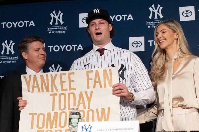 Gerrit Cole llegó al Yankee Stadium este miércoles para su presentación como nuevo integrante de los Yankees de Nueva York con un cartel arrugado que decía ''Aficionado de los Yankees hoy, mañana y siempre''.A sus 11 años, Cole fue fotografiado sosteniendo ese mismo cartel en las tribunas durante el sexto partido de la Serie Mundial de 2001 en Phoenix. Las letras en cinta adhesiva usadas en ese cartel han cambiado de color de azul a marrón desde ese entonces.Posteriormente, desdeñó a los Yankees cuando lo eligieron como la vigésimoctava selección general del draft de 2008, optando por matricularse en la Universidad de California en Los Angeles (UCLA). Firmó con Pittsburgh tres años después como primera selección general. Ahora, como agente libre, finalmente vestirá el uniforme a rayas con un contrato récord de 324 millones de dólares por nueve temporadas.''Era mi sueño. Tuve una segunda oportunidad para ir por él'', afirmó.Cole usará el número 45, que había pertenecido al primera base Luke Voit. El derecho de 29 años se cortó la barba a fin de cumplir con las normas de los Yankees.''Se arregló muy bien, ¿no?'', dijo el manager de los Yankees, Aaron Boone, sobre un Cole famoso por su imagen desaliñada.''Experimenté el ardor de la navaja por primera vez'', respondió en son de broma el pitcher.El contrato de Cole es el más jugoso para un lanzador tanto en su valor total como en su promedio anual de 36 millones de dólares. Nueva York espera que Cole lidere un plantel joven que incluye a Aaron Judge, Gary Sánchez y Gleyber Torres rumbo al primer título de los Yankees desde 2009.''Necesitamos ganar algunos campeonatos mundiales'', destacó el propietario del equipo, Hal Steinbrenner. ''En plural''.Nueva York buscaba un as para encabezar una rotación que incluye de antemano al dominicano Luis Severino, Masahiro Tanaka, James Paxton y J.A. Happ. En el grupo figura también el quisqueyano Domingo Germán, quien podría ser suspendido al comienzo de la próxima temporada, bajo las políticas de Grandes Ligas contra la violencia doméstica.El equipo inició con una oferta por ocho años y se extendió a una novena campaña a fin de marcar la diferencia frente a otros potenciales rivales por los servicios de Cole, Los Ángeles Dodgers y Los Ángeles Angels. Tal parece que se trató del contrato más extenso para un pitcher desde el pacto de 10 años por 2.3 millones que Wayne Garland firmó con Cleveland antes de la temporada de 1976.Cole terminó la campaña pasada con foja de 20-5, con la mejor efectividad de la Liga Americana con 2.50 y al frente de Grandes Ligas en ponches recetados con 326 con un equipo de Houston que llegó hasta la Serie Mundial, donde cayó ante los Nationals de Washington.OF