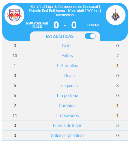 En la segunda parte, Chivas mejoró ligeramente, generando sus primeras jugadas de gol y obteniendo sus primeros tiros de esquina, aunque los Red Bulls no cesaron en su asedio al área rojiblanca.