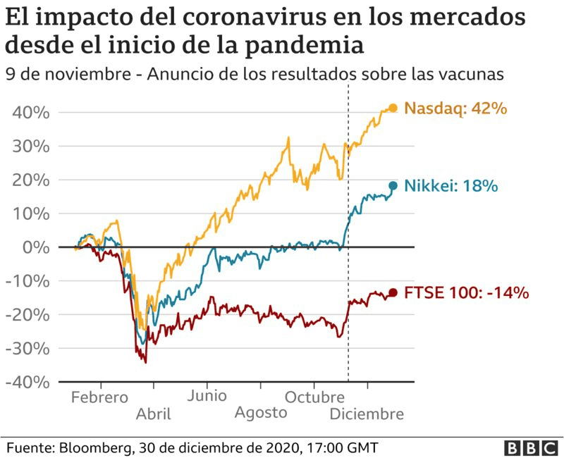 Con la pandemia y los confinamientos se desató un boom de inversionistas jóvenes que por primera vez entraron a operar en los mercados de valores.Muchos jóvenes que tenían ahorros -especialmente en países desarrollados- se atrevieron a negociar en bolsa.Uno de los motores de esta fiebre ha sido la rápida expansión de los brokers online, o corredores de bolsa en línea, que a través de una aplicación en el teléfono móvil abrieron las puertas a los aventureros inexpertos con el cobro de comisiones muy bajas (o incluso ninguna comisión) por el servicio.Pero así como han crecido los intermediarios online, también han aumentado los fracasos de los inexpertos que, después de leer un poco, creen que pueden lanzarse al agua siguiendo el consejo de amigos o influencers en redes sociales.En paralelo a los operadores en línea, están en el mercado los tradicionales bancos de inversión o corredores de bolsa que ofrecen análisis y recomendaciones a cambio de un pago por sus servicios que, en algunos casos, puede llegar a ser bastante alto.Cualquiera sea el camino que escojas, si quieres invertir en la bolsa tienes que tener un intermediario que conecte tus fondos con el mercado de valores; es decir, que ejecute tus órdenes de compra y venta.Y ese broker debe estar registrado frente a la autoridad reguladora de cada país para poder llevar a cabo la transacción.Sorteado ese paso, tendrás que analizar si quieres invertir en instrumentos de renta variable (como acciones o fondos) o en instrumentos de renta fija (como bonos).Todo depende de cuánto estés dispuesto a arriesgar. A mayor riesgo, mayor posibilidad de ganar más dinero. Y a menor riesgo, la rentabilidad que puedes conseguir con tu inversión será reducida."Es clave conocer tu perfil de riesgo", le dice a BBC Mundo Hugo Osorio, subgerente de Estrategias de Inversión de la empresa de servicios financieros Falcom Asset Manager.Estos son algunos de los principales errores que cometen los inversionistas novatos cuando deciden poner su dinero en los mercados bursátiles.Uno de los errores más comunes entre quienes comienzan a invertir es buscar ganancias a corto plazo. "Lo mínimo es ponerse un horizonte de tres años", explica Osorio.Quienes se dedican a invertir de manera profesional suelen hacerlo pensando en conseguir ganancias a largo plazo, precisamente para evitar las volatilidades de las bolsas.Con eso en mente, cuanto mayor sea la cantidad de dinero invertido, mayores serán los rendimientos que irás ganando con el paso del tiempo.A medida que el dinero sume intereses, la cantidad reinvertida también irá creciendo. A esto se le llama el interés compuesto; es decir, ganar más dinero con tu propio dinero.Esta es una regla básica para cualquier inversionista, más allá de que tenga poco a mucho dinero.No se pueden poner todos los fondos en el mismo lugar. Por eso los expertos hablan de tener una cartera diversificada, con una parte de tus recursos invertida en instrumentos de renta variable y otra parte en renta fija.En países como Estados Unidos es común la idea de invertir un 60% de los fondos en renta variable y el otro 40% en renta fija, pero esa fórmula no suele ser recomendable para inversores que recién se están iniciando en los mercados bursátiles, advierte Osorio.Lo más recomendable es comenzar invirtiendo de una manera cauta, construyendo un portafolio (cartera de inversiones) con diferentes tipos de activos financieros y con distintos niveles de exposición al riesgo.Como cuando vas al supermercado y pones en la cesta distintos productos. Puedes combinar, por ejemplo, acciones, fondos, bonos. Y si tienes más recursos, puedes agregar a la cesta monedas, materias primas y otros productos más especializados.En el último tiempo han ganado terreno como instrumento de inversión los ETF (Exchange Trade Fund, por sus siglas en inglés), que en español se conocen como fondos cotizados en bolsa: un producto que mezcla el mundo de los fondos de inversión y el mundo de las acciones.De cualquier forma que decidas invertir, solo asegúrate de que la combinación esté diversificada y sea adecuada para tu tolerancia al riesgo y tus objetivos de inversión.En los mercados bursátiles no todas las decisiones se toman con la mente fría y, aunque las expectativas se basan en análisis técnicos, siempre hay elementos irracionales o inconscientes que entran en juego.Si logras resistir una fuerte caída bursátil sin vender tus acciones, es posible que cuando venga el rebote ganes mucho dinero. El problema es que cuando el pánico se contagia, el efecto dominó puede nublar el juicio y llevarte a tomar decisiones apresuradas.Un ejemplo cercano es lo que ocurrió el año pasado con la pandemia de covid-19. El siguiente gráfico muestra el impacto de la volatilidad en los mercados durante 2020.Si tu mirada está puesta en el largo plazo, teóricamente una caída fuerte no debería impulsarte a vender en medio de la tormenta.Todos tenemos un perfil de riesgo distinto.Un buen análisis de los límites de tus condiciones financieras y los objetivos que persigues es fundamental para saber qué es lo que más te conviene.Algunas de las preguntas esenciales son: cuánto dinero puedes invertir, cuánto estás dispuesto a perder, en qué plazo esperas conseguir rentabilidad, cuál es el objetivo de la inversión. ¿Quieres ganar dinero rápido en menos de un año para financiar tus estudios o quieres invertir para tener una buena jubilación?Para los que recién están comenzando en este viaje, la recomendación de los expertos es buscar asesoría. Y en la medida que estudies y conozcas cómo funcionan los mercados, tendrás más herramientas para arriesgarte a caminar solo.Para los que prefieren invertir siguiendo las recomendaciones de un asesor especializado, hay que comparar las comisiones que cobran estos expertos por su servicio.Pero no solo eso. También hay que considerar que existen otros costos asociados a 