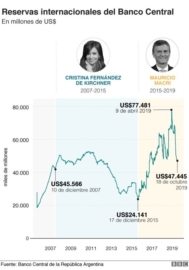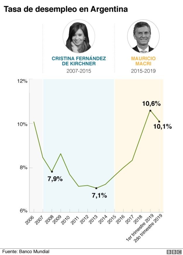 Cuando en 2015, Mauricio Macri ganó las elecciones presidenciales en Argentina, los organismos internacionales y los mercados financieros consideraron al candidato de centro derecha algo así como el hombre destinado a meter al país en el camino de la disciplina fiscal.Su programa de campaña prometía revertir algunos de los males que arrastra el país desde hace décadas.Para algunos, su victoria marcó un punto de inflexión después de lo sucedido en 2001, cuando el país fue protagonista del mayor impago de deuda soberana de la historia, luego del llamado "corralito" y en medio de una profunda crisis económica.Desde aquella fecha Argentina arrastra desequilibrios que las medidas de sucesivos gobiernos no pudieron solucionar.Tampoco lo consiguió Macri.El domingo 27 de octubre Macri perdió las elecciones frente a su rival peronista, Alberto Fernández, y la economía, según los expertos, tuvo mucho que ver en eso.Cuando asumió la presidencia, su Ejecutivo se encontró con un cepo -o control cambiario- impuesto en 2011 por el gobierno de Cristina Fernández de Kirchner para evitar la fuga de dólares.La economía se había cerrado al exterior y Argentina no tenía acceso al crédito para hacer frente a sus gastos.Ante esta situación, las autoridades empezaron a pagar los desequilibrios con las reservas del Banco Central.Esto llevó a la progresiva descapitalización del organismo, que el actual presidente logró corregir.Macri tuvo que lidiar también con una distorsión de precios relativos debido a la millonaria política de subsidios aplicada por el gobierno de Fernández de Kirchner sobre el transporte público de pasajeros, el combustible, el gas y la electricidad.El kirchnerismo también congeló las tarifas de estos servicios, haciendo que fueran unos de los más baratos de América Latina, a pesar de que su costo real, en dólares, era muchísimo más alto.El gobierno de Cristina se fue dejando una inflación de casi el 27% en 2015, pero que iba a la baja desde el año anterior."Se fue con una economía que tenía una gran cantidad de desajustes, pero que crecía en la zona del 3% anual y la inflación estaba anclada con el cepo cambiario", dice Marina Dal Poggetto, directora ejecutiva de la consultora aregntina Eco Go."Había una enorme cantidad de desajustes macroeconómicos que no eran sostenibles en el tiempo, pero no fue la economía lo que definió esa elección"."Lo que la definió fue el cansancio del kirchnerismo", afirma en alusión a la fuerza política que por 12 años gobernó Argentina (2003-2015) con una fuerte intervención estatal sobre la economía y una retórica antimercados.Lo primero que hizo Macri, cuando llegó a la presidencia, fue abrir Argentina de nuevo al exterior y levantar el cepo.Eso llevó a que el peso se devaluara 40% contra el dólar, pero el impacto no fue tan brusco debido a que muchos precios ya tomaban como referencia el dólar informal conocido como "dólar blue".Y aunque momentáneamente se consiguió recuperar el control de la economía, el momento dulce duró realmente poco.En mayo de 2018, en un contexto de fuerte apreciación del dólar y de subida de tipos de interés en Estados Unidos, muchos inversores extranjeros decidieron sacar su dinero de Argentina.Sin crédito, Macri se vio obligado a acudir al Fondo Monetario Internacional (FMI) y a pactar un préstamo de más de US$50.000 millones.Así que, 4 años después de su llegada al poder, el llamado "efecto Macri" se desinfló.La economía de Argentina sigue marcada por la recesión, una inflación galopante y una desconfianza general de los inversores como consecuencia del deterioro de sus principales indicadores.Entonces se hablaba de la "herencia de Cristina" y ahora que el peronismo vuelve al poder con Alberto Fernández, los kirchneristas hablan de la herencia que va a dejar Macri.¿Pero cómo encontró Macri el país? ¿Cómo está ahora?En BBC Mundo repasamos la evolución de algunos de los principales indicadores económicos:Según datos oficiales de la actual administración, Argentina se encontraba a finales de octubre en recesión oficial tras acumular dos trimestres consecutivos de contracción del Producto Interno Bruto (PIB).Macri heredó el país creciendo al 2,7% tras un periodo de vaivenes del anterior gobierno y llegó a las elecciones presidenciales con el PIB cayendo con fuerza.Las estimaciones del FMI prevén que el crecimiento de Argentina se desplome hasta el -3,1% cuando acabe el año."Uno de los errores de Macri fue tratar cada problema de la economía como un compartimento estanco en vez de como un todo", explica Dal Poggetto.Encargó al ministro de Energía que resolviera el tema tarifario, al presidente del Banco Central que arreglara el tema de la inflación, y al ministro de Economía resolver el tema fiscal".Pero lo cierto es que todos estos temas macroeconómicos están entrelazados.Una subida de las tarifas en los servicios básicos impacta en la inflación y si el gobierno decide usar subsidios para que el bolsillo de los ciudadanos no sufra tanto la subida de precios, es el equilibrio fiscal el que se deteriora."No hubo un programa económico consistente", dice.Para la analista, en 2017 el mercado todavía se estaba preguntando "si el gobierno de Macri era un gobierno de transición entre dos populismos o uno que había llegado de verdad a cambiar las cosas".Si hay algo difícil en la convulsa economía argentina es obtener una serie histórica de sus principales indicadores.En parte se debe a que el INDEC, el instituto encargado de las estadísticas, estuvo intervenido entre los años 2007 y 2015.Hubo, se dice, una "emergencia estadística nacional".Entonces, gobernaba Cristina Fernández de Kirchner, y al rescate de los datos acudieron diversas organizaciones independientes que empezaron a contabilizar la inflación, que era mucho más alta de lo que informaba el gobierno.Una de las primeras cosas que hizo Macri al asumir fue volver a 