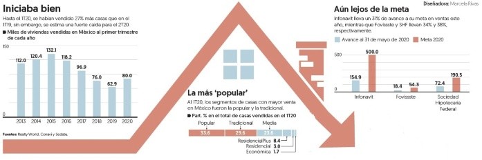 En abril y mayo la demanda de vivienda nueva media y residencial cayó entre 12 y hasta 50 por ciento anual para algunas inmobiliarias, derivado de la crisis económica desatada por la emergencia sanitaria decretada por la pandemia del coronavirus en el país. Especialistas y desarrolladores coinciden en que habrá una reconfiguración en el mercado, cuando se nivele la oferta y la demanda, luego de haber permanecido cerradas por casi dos meses las obras de las desarrolladoras de vivienda en el país. “Veníamos colocando prácticamente en vivienda social alrededor de 200 unidades, en vivienda media 50 casas mensuales y en residencial alrededor de 20. Ahora en estos meses (abril y mayo) se ha bajado en residencial prácticamente al 50 por ciento, media cayó 35 por ciento y en interés social la baja fue de 12 o 15 por ciento, a lo mucho”, estimó, José Luis Solórzano, director general de la desarrolladora de vivienda Grupo Herso. Jorge Paredes Guerra, presidente de Realty World advirtió que el primer trimestre del año había sido muy bueno para la colocación de viviendas nuevas en casi todos los segmentos, con un repunte de hasta 27.1 por ciento anual, con cerca de 78 mil unidades vendidas, sin embargo, para el segundo trimestre se prevé una caída. “La historia cambia al momento que empieza la pandemia, ha disminuido la colocación de vivienda por el confinamiento y la reducción de personal u operaciones en notarías, registros y catastros, lo que ha hecho que se coloque menos vivienda”, aseguró. Jesús Sandoval Armenta, director general de la desarrolladora Ruba, señaló que uno de los principales cambios por la pandemia será en su mezcla de ingresos, ya que el año pasado alrededor de 79 por ciento provenían del segmento medio y residencial, con valor de hasta 3.5 millones de pesos, y el resto era vivienda social de hasta medio millón de pesos. Sin embargo, en el acumulado de enero a abril de 2020, el 75 por ciento fue residencial y el 25 por ciento restante fue de interés social. “A abril nosotros habíamos vendido 2 mil 673 viviendas, de esas mil 129 eran de interés social, mil 185 vivienda media y 359 residenciales (...) Habrá una caída principalmente en residencial (con costos) arriba de los 3 millones de pesos, allí es donde hemos notado una contracción mucho más dramática”, aseveró en entrevista. Ruba produce alrededor de 15 mil viviendas anuales y opera en como Tijuana, Monterrey y Saltillo. Leonardo González, analista de Real Estate de Propiedades.com, dijo que el comportamiento del mercado en estos meses está en una fase de ajuste, por lo que podría observarse un reemplazo de prospectos, ajuste de precios por ofertas o beneficios para adquirir en un período de crisis. “Sobre todo para aquellos desarrollos en preventa o en fase de cierre de venta”, dijo. María Aurora García de León Peñúñuri, directora general de la desarrolladora Derex afirmó que, en algunas partes del país como Sonora, el impacto de la pandemia inició desde antes de marzo, por lo que tuvieron que anticiparse a aplicar medidas que protegieran la salud financiera de la empresa. “Aquí el nombre del juego es liquidez, instrumentamos un control del gasto muy estricto, aprovechamos los beneficios de prórroga del gobierno federal, tomamos lo que hubo y nuestras líneas que teníamos disponibles para transitar bien al periodo de reactivación sin tener otro tipo de medidas más agresivas”, explicó. García de León Peñúñuri afirmó que Derex no contaba con inventario al momento del decreto de la contingencia, por lo que hasta el 18 de mayo reanudó sus operaciones en obra para seguir con la entrega de casas intraurbanas comprometidas por lo menos este año. La colocación de créditos hipotecarios por parte del Infonavit, Fovissste y la banca, ayudaron a mantener apenas a flote el ritmo de colocación de vivienda en abril y mayo, pese a la pandemia. “Mantuvimos las ventas en los meses de abril y mayo gracias al Infonavit, Fovissste y la banca que nunca disminuyeron su actividad en la colocación de créditos”, dijo José Luis Solórzano, CEO de Ruba, firma que contaba con al menos tres meses de inventario para librar la crisis hasta principios de julio. Por su parte, José Luis Solórzano, CEO de Herso, destacó el papel de las instituciones crediticias para diversificar sus productos y apoyar al mercado de la vivienda en estos meses. “Creo que han hecho muy buena política en diversificar mayor cantidad de créditos y dar más opciones a los derechohabientes de que puedan hacerse de una vivienda”, concluyó. Fernando