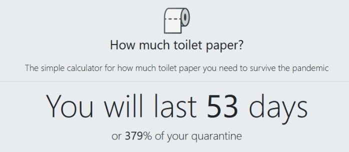 Aunque no es un artículo prioritario ante la expansión del coronavirus, alrededor del mundo se registran compras excesivas de papel de baño.Pero, ¿cuánto papel de baño necesitas para sobrevivir la pandemia durante una cuarentena? Un estudiante de Desarrollo de Software, Ben Sassoon, y el artista Sam Harris, que viven en Londres, crearon una calculadora en línea para responder esa pregunta y contribuir a que no haya escasez del producto: howmuchtoiletpaper.com.En la página se informa que más de cinco millones de personas han usado la calculadora y que el promedio tiene 500% más papel del que necesita para una cuarentena.La calculadora muestra de inicio los días que durará el papel higiénico según los rollos que tengas (la barra puede desplazarse para ajustar las unidades que tengas almacenadas). Una segunda barra muestra las veces que vas al baño al día (calcula un promedio de tres, pero también puede modificarse).Además de los días, muestra el porcentaje que representa el papel para cubrir el periodo de cuarentena (estimada en 14 días).Así, 10 rollos de papel con un uso del baño de tres veces al día durarán 53 días, lo que sería un 379% de lo requerido para el periodo de aislamiento. Tres rollos serían más que suficientes para la cuarentena (114%). De momento solo está disponible en el idioma inglés.Para hacer un cálculo personalizado, en las opciones avanzadas se puede cambiar el número de hojas de papel que usas, así como las hojas por rollo y los días de la cuarentena. Además permite hacer la estimación del uso de hasta 10 personas.IM
