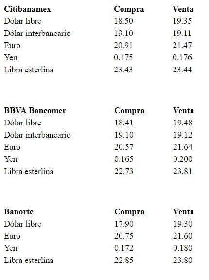 Este lunes, el dólar estadounidense inicia con una ganancia de siete centavos respecto al cierre previo, se vende hasta en 19.48 pesos y se compra en un mínimo de 17.90 pesos en bancos de la Ciudad de México.De acuerdo con Banco Base, el peso inicia con una depreciación moderada, cotizando alrededor de 19.08 pesos por dólar, perdiendo terreno junto a la mayoría de los principales cruces del dólar.Durante la sesión se dará a conocer poca información económica relevante, por lo que se espera que el tipo de cambio se mueva en función de noticias del exterior. La depreciación moderada del peso se debe a que existe cautela entre los participantes del mercado por dos eventos clave de esta semana.Uno es la publicación de la estimación oportuna del crecimiento económico del segundo trimestre, el próximo miércoles, la cual se espera que muestre una contracción trimestral.Y la decisión de la política monetaria de la Reserva Federal de Estados unidos, el mismo miércoles, donde se espera que el FOMC recorte su tasa de interés en 25 puntos base a un rango entre 2.0 y 2.25 por ciento.Explicó que una política monetaria más acomodaticia en Estados Unidos tiende a favorecer al peso mexicano, contrario a lo que sucedería si se confirma una contracción del PIB, es probable que en la sesión del miércoles se observe un incremento de la volatilidad del tipo de cambio.Por otro lado, en México se publicó la tasa de desocupación del mes de junio, la cual se ubicó en 3.5 por ciento, sin cambios con respecto al mes previo, de acuerdo con cifras ajustadas por estacionalidad, manteniéndose en ese nivel por tercera ocasión consecutiva.Sin embargo, en su comparación anual, la tasa de desempleo se incrementó desde 3.4 a 3.5 por ciento, aunado al deterioro en el mercado laboral, pues la tasa de subocupación, que indica el porcentaje de la población ocupada que tiene la necesidad y disponibilidad de ofertar más tiempo de trabajo del actual, se ubicó en 7.6 por ciento, mientras que hace un año, dicha tasa se había ubicado en 6.8.La Bolsa Mexicana abre semana con marginal avanceDurante la sesión, se espera que el tipo de cambio cotice entre 19.00 y 19.20 pesos por dólar, agregó la institución financiera.Por su parte el Banco de México (Banxico) informa en el Diario Oficial de la Federación (DOF) que el tipo de cambio para solventar operaciones denominadas en moneda extranjera pagaderas en el país se ubica en 19.0699 pesos.En tanto, las Tasas de Interés Interbancarias de Equilibrio (TIIE) a 28 y 91 días se colocan en 8.4700 y 8.4206 por ciento, respectivamente, ambas con pérdida de 0.0040 y 0.0044 puntos porcentuales, respectivamente.AC