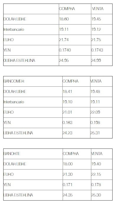 Esta mañana, el dólar libre inicia la jornada con un retroceso de siete centavos en comparación con el cierre previo, al venderse en un precio máximo de 19.48 pesos y se compra en un mínimo de 18 pesos en ventanillas bancarias de la Ciudad de México.De acuerdo con Banco BASE, la moneda mexicana abre la sesión con una apreciación ante un debilitamiento generalizado del dólar estadounidense frente a sus principales cruces.Ello, indicó, debido a que la víspera el principal asesor económico del presidente de Estados Unidos, Donald Trump, Larry Kudlow, negó que las conversaciones comerciales con los funcionarios de China estén deteriorándose.Asimismo, señaló que la reunión programada para el 30 y 31 de enero próximo con el viceprimer ministro chino, Liu He, será determinante, lo que disminuyó la incertidumbre sobre la posibilidad de que ambos países puedan llegar a un acuerdo comercial en el corto plazo. La institución financiera subrayó que mañana el Senado de Estados Unidos votará dos propuestas para terminar con el cierre parcial del gobierno en ese país, aunque es poco probable que se llegue a un acuerdo pronto.Sin embargo, dijo dicha situación no genera actualmente una preocupación por lo que los mercados de capitales en Europa registran ganancias.Para la sesión de este miércoles, indicó, se espera que el tipo de cambio cotice entre 19.05 y 19.25 pesos por dólar.A su vez, el Banco de México (Banxico) informa en el Diario Oficial de la Federación (DOF) que el tipo de cambio para solventar operaciones denominadas en moneda extranjera pagaderas en el país se coloca en 19.1297 pesos.Asimismo, las Tasas de Interés Interbancarias de Equilibrio (TIIE) a 28 y 91 días se ubican en 8.5950 y 8.6150 por ciento, ambas con retroceso de 0.0050 y 0.0025 puntos porcentuales, respectivamente.OA