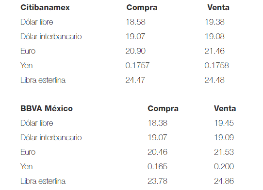 El último día de la semana, el dólar libre abrió la jornada con descenso de cinco centavos respecto al cierre de ayer, al venderse en un precio máximo de 19.45 pesos, y se compra en un mínimo de 18.38 pesos en bancos de la capital.De acuerdo con Banco Base, el peso inicia la sesión con una apreciación, ante un mayor optimismo en relación a la aprobación del T-MEC en Estados Unidos.Respecto a indicadores económicos, esta mañana en México se publicaron las ventas minoristas de agosto, las cuales mostraron un crecimiento interanual de 2.6 por ciento y un crecimiento mensual de 0.3 por ciento.Dicho resultado, destaca, fue mejor a lo esperado y es señal de que el consumo al por menor sigue creciendo de manera estable a pesar de que otros sectores de la economía se han desacelerado en el año.Por otra parte, hoy el Senado de la República, aprobó en lo general y lo particular, la Ley de Ingresos de la Federación (LIF) 2020, y entre los cambios que se incluyeron dentro del documento aprobado se destaca la eliminación del artículo transitorio que proponía la legalización de autos conocidos como “chocolate”.Con ello, la LIF prevé ingresos totales por un monto de seis billones 103 mil 317.4 millones de pesos, lo que representa un aumento de 0.1 por ciento respecto a los ingresos previstos inicialmente.La institución señala que durante la sesión, se espera que el tipo de cambio cotice entre 19.00 y 19.15 pesos por dólar. A su vez, el Banco de México (Banxico) publica en el Diario Oficial de la Federación (DOF) que el tipo de cambio para solventar operaciones denominadas en moneda extranjera pagaderas en el país se ubica en 19.0878 pesos por dólar.Asimismo, refiere, las Tasas de Interés Interbancarias de Equilibrio (TIIE) a 28 y 91 días se colocan en 7.9915 y 7.8465 por ciento, en ese orden, ambas con pérdidas, la primera de 0.0020 y la segunda de 0.0085 puntos porcentuales.NR
