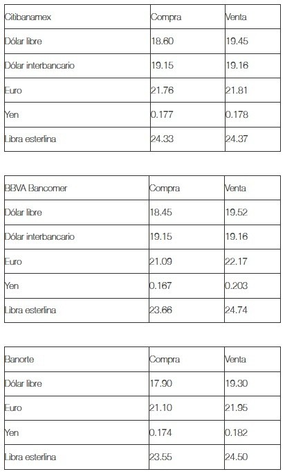 El dólar libre inicia la jornada en un precio máximo a la venta de 19.52 pesos, un avance de cuatro centavos respecto al cierre del viernes, y se compra en un mínimo de 17.90 pesos en sucursales bancarias de la Ciudad de México.De acuerdo con Banco BASE, el peso inicia la sesión con una depreciación, a diferencia de la moneda nacional la mayoría de las divisas ganan terreno como consecuencia de la especulación de que la Reserva Federal (Fed) podría recortar su tasa de interés este año.Explicó que varias divisas de economías emergentes avanzan junto a la lira turca, luego de que en Turquía el partido en el poder perdió las elecciones municipales de Estambul, lo que representa un golpe político para el presidente Erdogan.La reacción del mercado es positiva, pues durante los últimos dos años han crecido las dudas sobre la calidad de la democracia en Turquía y el resultado del fin de semana tranquiliza a los mercados.El Grupo Financiero señaló que a diferencia del resto del mercado, el peso mexicano es de las pocas divisas que pierden terreno, pues todavía existe incertidumbre sobre la economía de México debido a riesgos internos y externos que podrían afectar el crecimiento económico en el corto plazo.Informó que esta mañana en México se dio a conocer el IGAE de abril, el cual mostró un crecimiento anual de 0.3 por ciento en cifras ajustadas por estacionalidad, luego de haber mostrado una contracción de 0.6 por ciento en marzo.En su comparación mensual, el IGAE creció 0.1 por ciento, luego mostrar una contracción de 0.5 por ciento en marzo pasado.Por otra parte, la inflación de la primera quincena de junio que se ubicó en una tasa interanual de 4.0 por ciento, ante un incremento quincenal en los precios de 0.01 por ciento, lo cual está en línea con las expectativas del mercado y ha evitado que se observen movimientos del tipo de cambio.Sin embargo, no todo es positivo, pues la inflación subyacente se mantiene elevada en una tasa interanual de 3.87 por ciento, ante un incremento quincenal del subíndice subyacente de 0.16 por ciento.De esta forma durante la sesión, se espera que el tipo de cambio cotice entre 19.05 y 19.20 pesos por dólar.A su vez, el Banco de México (Banxico) informa en el Diario Oficial de la Federación (DOF) que el tipo de cambio para solventar operaciones denominadas en moneda extranjera pagaderas en el país se ubica en 19.0661 pesos.Asimismo, las Tasas de Interés Interbancarias de Equilibrio (TIIE) a 28 y 91 días se colocan en 8.5039 y 8.5125 por ciento, ambas con un retroceso de 0.0004 y 0.0018 puntos porcentuales respectivamente.OA