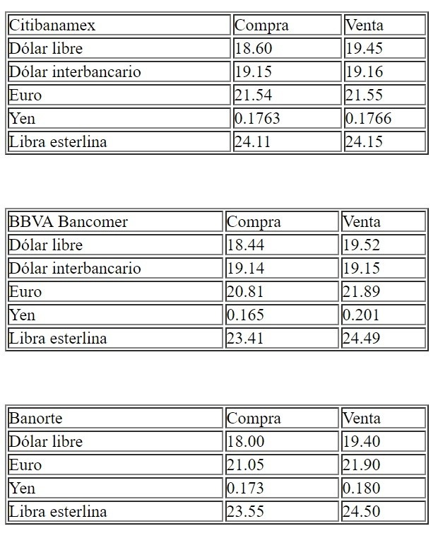 Este lunes, el dólar libre inicia la jornada en 19.52 a la venta, con un ligero avance de un centavo respecto al cierre del viernes, y se adquiere en un precio mínimo de 18 pesos en sucursales bancarias de la Ciudad de México.De acuerdo con Banco BASE, el peso inicia la sesión con pocos cambios respecto al cierre del viernes, con una apreciación mínima a la par con la mayoría de las divisas en la canasta de principales cruces, ante la expectativa de que la Reserva Federal pueda adoptar un lenguaje más acomodaticio en su anuncio de política monetaria programado para el miércoles 19 de junio.Explicó que, aunque no se espera ningún ajuste a la tasa de interés, en semanas recientes varios miembros del Comité Federal de Mercado Abierto (FOMC) han expresado la posibilidad de recortes a la tasa de interés, en particular porque existen señales de desaceleración económica y la inflación se ubica por debajo del objetivo del 2.0 por ciento.Los participantes del mercado también estarán atentos a algunos indicadores económicos relevantes en Estados Unidos, principalmente los de vivienda y permisos de construcción de mayo. Por su parte, en México se publicará poca información económica relevante.Se espera que la liquidez del mercado cambiario siga disminuyendo por motivos estacionales por lo que en la semana el tipo de cambio podría moverse con noticias relacionadas con el flujo migratorio proveniente de Centroamérica, en particular por lo que pueda decir el presidente de Estados Unido, Donald Trump.Durante la sesión, se prevé que el tipo de cambio cotice entre 19.10 y 19.25 pesos por dólar.A su vez, el Banco de México (Banxico) informó en el Diario Oficial de la Federación (DOF) que el tipo de cambio para solventar operaciones denominadas en moneda extranjera pagaderas en el país se ubica en 19.1487 pesos.En tanto, las Tasas de Interés Interbancarias de Equilibrio (TIIE) a 28 y 92 días se sitúan en 8.5105 y 8.5160 por ciento, ambas sin cambios.AC