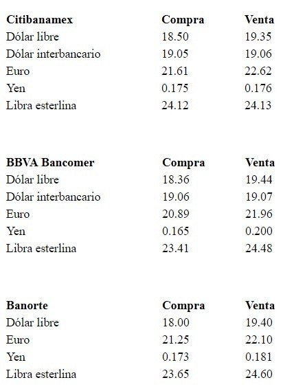 Al iniciar la semana, el dólar libre se vende en un precio máximo de 19.44 pesos, un retroceso de 10 centavos en relación con el cierre del viernes, y se compra en un precio mínimo de 18.00 pesos en bancos de la Ciudad de México.Banco Base indica que el peso se aprecia ante un mayor apetito por el riesgo en los mercados financieros globales, luego de que los mandatarios de Estados Unidos y China alcanzaron una tregua comercial, lo que evitó que en el corto plazo se incrementen los aranceles.El presidente de Estados Unidos, Donald Trump, dijo que se moderará el bloqueo para que compañías estadounidenses sean proveedoras del gigante tecnológico Huawei, lo que contribuye con las ganancias en los mercados de capitales de Asia y Europa.El peso también gana terreno como consecuencia de un incremento de los precios del petróleo, resultado de la tregua comercial, así como del acuerdo entre los países de la Organización de Países Exportadores de Petróleo (OPEP) y sus aliados por extender los recortes a la producción petrolera.En este contexto explicó que, durante la sesión, se espera que el tipo de cambio cotice entre 19.05 y 19.20 pesos por dólar.A su vez, el Banco de México (Banxico) informa en el Diario Oficial de la Federación (DOF) que el tipo de cambio para solventar operaciones denominadas en moneda extranjera pagaderas en el país se ubica en 19.2087 pesos.Asimismo, las Tasas de Interés Interbancarias de Equilibrio (TIIE) a 28 y 91 días se colocan en 8.4887 y 8.4750 por ciento, la primera con avance de 0.0007 y la segunda con una pérdida de 0.0083 puntos porcentuales, respectivamente.AC