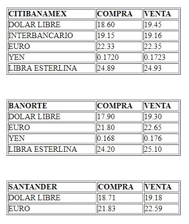 Instituciones bancarias de la capital mexicana venden el dólar libre hasta 19.45 pesos, lo que representa un avance de nueve centavos frente al cierre anterior, y lo adquieren en un precio mínimo de 17.90 pesos.De acuerdo con Banco BASE, el debilitamiento del peso se da a la par de una caída para otras divisas emergentes, sobre todo la lira turca, ante la especulación del subgobernador del Banco Central de Turquía, Turalay Kenç, planea renunciar.Los mercados financieros también iniciaron la sesión tras noticias desfavorables de Europa, precisó la institución financiera.Por otro lado, agregó, respecto al proceso de renegociación del Tratado de Libre Comercio de América del Norte (TLCAN) las noticias siguen siendo favorables, por lo que mercado seguirá atento a las noticias relacionadas, luego de que el presidente de Estados Unidos, Donald Trump, y el primer ministro de Canadá, Justin Trudeau, han dicho que se podría llegar a un acuerdo trilateral el viernes. Para este día, Banco BASE estima que el tipo de cambio se cotice entre 18.90 y 19.20 pesos por dólar en operaciones interbancarias a la venta.A su vez, el Banco de México (Banxico) informa en el Diario Oficial de la Federación (DOF) que el tipo de cambio para resolver operaciones denominadas en moneda extranjera pagaderas en el país se ubica en 19.0659 pesos.Asimismo, indica que la Tasa de Interés Interbancaria de Equilibrio (TIIE) a 28 y 91 días se sitúa en 8.1100 y 8.1500 por ciento, ambas con ganancias de 0.0057 y 0.0075 puntos porcentuales, respectivamente. OA