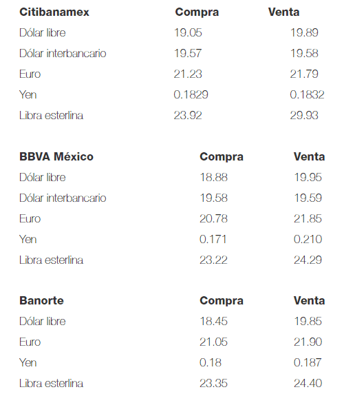 El dólar libre inicia la sesión con un alza de dos centavos más en comparación con el cierre previo, se vende hasta en 19.95 pesos y se compra en un mínimo de 18.45 pesos en bancos de la Ciudad de México.De acuerdo con Banco Base, esto se da luego de que en Estados Unidos la inflación al productor de septiembre se ubicó en una tasa interanual de 1.4 por ciento, la más baja desde noviembre de 2016, mostrando un retroceso mensual de 0.3 por ciento, el mayor desde febrero de 2015.Explicó que debido a que menores precios al productor se tienden a traducir en una menor inflación, el dato eleva la probabilidad de que la Reserva Federal vuelva a recortar su tasa de interés antes de que termine el año, lo que permite que el peso mexicano gane terreno.No obstante, sigue habiendo nerviosismo en el mercado debido a la guerra comercial entre China y Estados Unidos. Ayer por la tarde, la administración del presidente estadounidense, Donald Trump, dio a conocer que ocho empresas chinas fueron puestas en una lista negra que les impide comprar partes y componentes de empresas estadounidenses.Cabe recordar que además de la guerra comercial entre China y Estados Unidos, los mercados europeos se han visto afectados por el riesgo de que ocurra un “hard Brexit” el 31 de octubre.Mientras que el día de ayer Arturo Herrera, secretario de Hacienda, dijo que la economía mexicana ha acumulado 33 trimestres consecutivos sin recesión, aunque reiteró que México ha crecido a una tasa anual promedio de 2.4 por ciento en los últimos 40 años, lo que calificó como “mediocre”.Herrera advirtió que la economía mexicana debe estar “preparada” para enfrentar una crisis económica global.La institución financiera detalló que la sesión se espera que el tipo de cambio cotice entre 19.50 y 19.65 pesos por dólar.Por su parte, el Banco de México (Banxico) publica en el Diario Oficial de la Federación (DOF) que el tipo de cambio para solventar operaciones denominadas en moneda extranjera pagaderas en el país se ubica en 19.5522 pesos por dólar.En tanto, las Tasas de Interés Interbancarias de Equilibrio (TIIE) a 28 y 91 se ubican en 8.0025 y 7.9200por ciento, respectivamente, la primera con pérdida de 0.0025 y la segunda con ganancia de 0.100 puntos porcentuales.NR