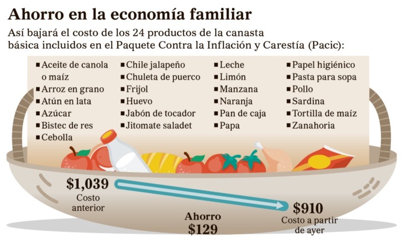 La Presidenta de México, Claudia Sheinbaum, anunció ayer la renovación del Paquete contra la Inflación y la Carestía (Pacic), con la que el Gobierno mexicano y la iniciativa privada buscan controlar los precios de 24 productos de la canasta básica.“Firmamos el Paquete contra la Inflación y la Carestía (Pacic) 2024-2025 con empresas productoras y comercializadoras de los 24 productos de la canasta básica”, informó Sheinbaum en sus redes sociales.La renovación de esta iniciativa, que comenzó con el ex presidente Andrés Manuel López Obrador (2018-2024) después de la pandemia de COVID-19 para controlar la inflación, tendrá una vigencia de seis meses y es la primera vez que sucede en la gestión de Sheinbaum, a poco más de un mes de tomar posesión como presidenta de México.Este programa busca combatir el incremento en los precios de productos esenciales y aliviar el impacto de la inflación en la economía familiar de los mexicanos. “El compromiso es fijar el precio máximo en 910 pesos; esto representa 129 pesos de reducción respecto al acuerdo anterior, que fue de mil 039 pesos“, detalló en su mensaje la Presidenta.También agradeció a las empresas involucradas por lo que consideró una “importante colaboración en apoyo a la economía popular”.A la salida del encuentro para renovar el Pacic en el Palacio Nacional, el presidente del Consejo Coordinador Empresarial (CCE), Francisco Cervantes, detalló que la renovación del acuerdo busca no solo mantener los precios, sino ampliar el número de productos incluidos en el acuerdo para apoyar a la población mexicana.“La renovación del Pacic se mantiene todo igual y vamos a ir sumando algunos otros productos de la canasta básica”, comentó Cervantes a los medios tras su reunión con Sheinbaum en la capital mexicana. Hasta ahora, la contención de precios se da a 74 productos y Cervantes recordó cada seis meses se tiene que renovar para que la inflación “no bote”.El dirigente empresarial resaltó el papel del CCE en la iniciativa y su intención de seguir colaborando. “El CCE está apoyando esta iniciativa y no solo ésta para apoyar a que México le vaya bien”, dijo.Con esta medida, el Gobierno de México espera iniciar 2025 con un panorama económico estable y fortalecer el poder adquisitivo de la ciudadanía, según Cervantes. CT