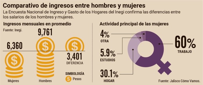Con el objetivo de disminuir la brecha salarial entre las mujeres y hombres, empresarias impulsan desde organismos mejoras salariales para las trabajadoras. Paulina Patlán, presidenta del Consejo Coordinador de Jóvenes Empresarios de Jalisco, explica que están trabajando con los legisladores para disminuir la brecha salarial.“Las mujeres ganan menos en empleos similares que los hombres: aún sigue siendo el 30% en promedio, de acuerdo con las estadísticas. Lo que estamos trabajando es parte de la agenda de género que se está impulsando desde el sector industrial y desde los jóvenes empresarios. Vamos a seguir trabajando con nuestros legisladores para que se creen estas políticas públicas para ir cerrando cada vez más estas diferencias en el tema salarial, además del tema de la violencia de género”.Ileana Rivera Gastelum, vicepresidenta de la Sección de Mujeres Empresarias en la Cámara de Comercio de Guadalajara, comenta que, para que existan mejores salarios para las mujeres, es necesaria la apertura de los hombres.“Yo creo que el reto de alguna manera es que colaboremos con los hombres, que son los que ahorita están en el poder, que abran estos espacios y estas oportunidades para que las mujeres puedan demostrar su capacidad y, con base en eso, poder tener mejores salarios”.Ambas entrevistadas coinciden en que otro de los principales ejes de trabajo es impulsar la agenda de género al interior de los organismos empresariales y negocios, que permita a las mujeres acceder a más cargos en los comités directivos y mejores puestos en las empresas.Las propuestas son en el marco del Día Internacional de la Mujer, que se conmemoró el pasado viernes.Por otra parte, el estudio “Ser Mujer en GDL 2024”, elaborado por el observatorio Jalisco Cómo Vamos, revela que “las mujeres están, en promedio, menos satisfechas con su situación económica que los hombres en el Área Metropolitana de Guadalajara. Y la proporción de mujeres que ha mejorado su situación económica personal es menor que la de los hombres”. PARA SABEREn el tema del ingreso en los hogares, los hombres han tenido un papel más preponderante que las mujeres. Según el estudio “Ser Mujer en GDL 2024”, se consultó quién es la persona que aporta más ingreso en los hogares y resultó que 30% fueron mujeres y 70%, hombres.