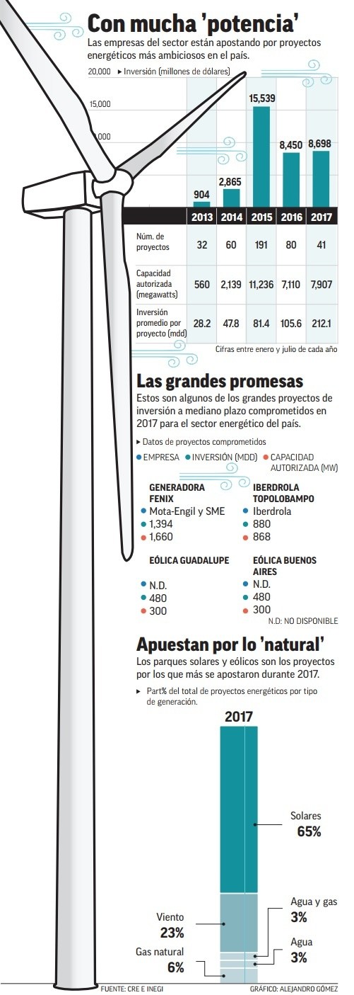 Entre enero y julio de este año la inversión promedio por planta de generación eléctrica de la iniciativa privada se duplicó respecto a 2016, debido a que las firmas apostaron por unidades de mayor potencia. En los primeros 7 meses de 2017 la Comisión Reguladora de Energía (CRE) reportó 41 proyectos, 39 menos que en el mismo periodo de 2016, sin embargo, su inversión promedio por planta fue de 212.1 millones de dólares, un monto que duplicó los 105.6 millones de dólares de 2016. Entre las que más invirtieron en generación destacan Mota-Engil México, Iberdrola, Cemex, IEnova, Arca Continental y SunPower, entre otras. La capacidad de generación autorizada entre enero y julio de 2017 fue de siete mil 906.537 megawatts, 11.2 por ciento más que en igual lapso de 2016. En total en México se comprometieron inversiones en generación eléctrica por parte de la iniciativa privada por 8 mil 697.7 millones de dólares en los primeros 7 meses de 2017, apenas 3 por ciento más que en igual lapso de 2016, según la CRE. Directivos de compañías del sector refieren que este es el mejor momento para crear proyectos de 2 tipos: grandes plantas para vender a terceros y pequeñas generaciones en sitio para firmas medianas y pequeñas. Isaac Romano Béjar, director de Elan Energy, dijo que quieren desarrollar 150 megawatts en proyectos de generación para manufactureras medianas, lo cual conlleva una inversión de 130 millones de dólares. “Es un negocio con gran potencial, la generación en sitio es la tendencia de la productividad en el futuro. Lo que queremos es que las empresas que requieran electricidad para sus procesos tengan una solución cerca de sus operaciones. Vamos por industriales que necesiten entre 3 a 10 megawatts de energía”, explicó. Elan Energy es parte de Grupo Atención, que soluciona las necesidades de compañías. Isaac Romano destacó que ahora trabajan en la búsqueda de fondos que apoyen el desarrollo de la nueva empresa. En el caso de la generación en grandes proyectos, Enrique Alba, director general de Iberdrola Mé- xico, destacó recientemente que hay mucho potencial de generación en el país, incluido lo que venden a CFE en las subastas eléctricas. “Tenemos una cartera de plantas por construir con una capacidad que suma mil megawatts, los cuales podremos vender a privados o someterlos a otros concursos que organice CFE en compra de potencia”, dijo el ejecutivo. El nuevo reglamento de mercado eléctrico aprobado por la Centro Nacional de Control de Energía, destacó, les permite tener distintos métodos para vender en el país. Otro caso a destacar es la Generadora Fénix, propiedad de la portuguesa Mota-Engil en jointventure con el Sindicato Mexicano de Electricistas (SME). Este año obtuvieron su permiso para construir una planta en el Estado de México en la que invertirán mil 393 millones de dólares. El desarrollo tendrá una capacidad de mil 660 megawatts y comercializará electricidad a firmas de la entidad. En la segunda semana de noviembre, Altos Hornos de México (AHMSA) anunció que invertirá 70 millones de dólares en la construcción de una nueva planta de energía eléctrica de gas natural con capacidad de 100 megawatts. Sin embargo, no es la única empresa que actualnmente también desarrolla proyectos de este tipo, pues también firmas del sector siderúrgico como Ternium, Autlán y ArcelorMittal analizan nuevas oportunidades en generación. Sus proyectos pueden sumar alrededor de mil millones de dólares de inversión. “Autlán, a través de su subsidiaria GFM Energía, llegó a un acuerdo con BAS Projects Corporation, con sede en España, para el desarrollo, construcción y puesta en marcha del proyecto eólico de 50 megawatts. Principalmente consumo de la empresa”, destacó la firma que preside José Antonio Rivero Larrea, sin aludir cuánto invertirán. En entrevista, Víctor Cairo, director general de ArcelorMittal México, dijo que ven proyectos de cogeneración o solares, para alimentar sus necesidades eléctricas en México, principalmente en Lázaro Cárdenas, Michoacán. En los siguiente seis meses, explicó, definirán qué proyecto instalar.