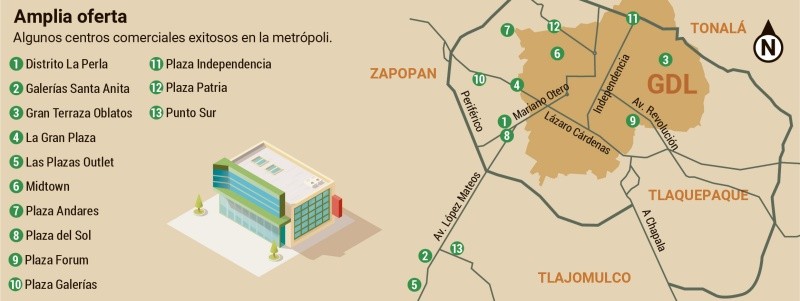 En los últimos dos años no se han construido nuevas plazas de gran formato en la ciudad debido a que se espera una consolidación de las ya existentes. Lo que sí habrá serán pequeñas plazas para centros barriales.Raúl Uranga Lamadrid, presidente de la Cámara de Comercio de Guadalajara comentó que por su naturaleza la capital de Jalisco se ha convertido en la ciudad comercial del país y ahora es un hub regional de plazas comerciales que atiende a toda la Región Occidente.“Guadalajara se ha consolidado porque no solamente le dan servicio a la ciudad, sino que como ciudad se ha convertido en este hub regional que tiene una influencia en un mercado de 22 millones de personas que viven a menos de tres horas de carretera, entonces estas plazas tienen este uso regional y las ha posicionado”, dijo.Entre las plazas más visitadas destacan Plaza Andares, Plaza Galerías, La Gran Plaza, La Perla, Punto Sur y Galerías Santa Anita.“Todas tienen este uso regional y se han posicionado, tienen su mercado local, pero también regional, además hay plazas nuevas en el Sur que están consolidándose”, agregó.El presidente de la Cámara de Comercio de Guadalajara informó que actualmente no hay plazas grandes en construcción sino proyectos pequeños.“Serán contadas las que tengamos, sobre todo de plazas grandes de gran formato, viene un tema de consolidación, lo que si veremos es habrá un crecimiento de plazas pequeñas con servicios barriales por el mismo crecimiento de la ciudad”, subrayó Raúl Uranga.El dirigente de la Cámara de Comercio de Guadalajara también comentó que se está buscando que el Centro Tapatío sea una opción para los visitantes de la ciudad.“En muchas plazas la gente va a pasear, a comer o dar la vuelta, pero no van a comprar, porque se sienten seguros, es todo un tema psicológico, entonces ¿por qué el Centro Histórico no puede pasar esto? por eso estamos promoviendo muchos eventos y todas estas cosas”. El 25 de noviembre de 1969 se inauguró la primera plaza comercial de la ciudad, México y Latinoamérica: Plaza del Sol. El proyecto ejecutivo la obra estuvo a cargo del arquitecto Alejandro Zohn, quien ya había realizado el Mercado Libertad-San Juan de Dios y otras obras como la Concha Acústica del Parque Agua Azul. Su concepto estaba inspirado en los centros comerciales de Estados Unidos, conocidos como “mall”. Javier Cañongo Escobedo, jefe de la Sección Especializada de Administradores de Centros Comerciales de la Cámara de Comercio de Guadalajara, dijo que este sector como todos los sectores ha pasado por una etapa de crecimiento.“Consideramos nosotros que la afluencia que tenemos o aforo es 70 a 80%, no es un numero malo, depende de cada plaza, pero me parece que es un número bueno en términos significativos”, dijo.El directivo explicó que el último trimestre del año es la temporada de mayor ocupación en las plazas por diversos eventos como El Buen Fin y la temporada de Navidad.“Nosotros tenemos una proyección de tener aforos de 90%, porque la realidad es que hemos trabajado duro, todos los factores que tuvimos de alguna manera nos hicieron reaccionar para generar nuevas estrategias, adaptarnos rápido al cambio y ofrecer cosas innovadoras a los clientes”, aseguró.Javier Cañongo agregó que para los próximos meses no se contempla la apertura de nuevas plazas de tamaño grande, pero sí pequeñas.Las plazas comerciales están catalogadas en diferentes formatos: Las mixtas incluyen comercio, servicios, oficinas y en algunos casos hasta parte industrial, otras plazas son de servicios y otras plazas están enfocadas a atender necesidades barriales con menos alrededor de una decena de locales.“Yo creo que Guadalajara se encuentra en un buen nivel, arriba de otras ciudades tenemos muchas plazas de buena calidad, que nos dan más apertura en el mercado y creo que las plazas de la ciudad están dentro de las mejores del país”, concluyó.De acuerdo con los especialistas en la construcción de plazas la transformación de los centros comercial va hacia el uso mixto.“Estamos viendo que la transformación del retail va hacía el uso mixto donde tengas todo en un solo lugar como vivienda, comercio, entretenimiento y donde trabajar”, dijo. Algunas plazas tradicionales que ya operan en la ciudad se reconvierten a usos mixtos para atraer a más clientes y sobrevivir luego de registrar baja afluencia de clientes y cierre de locales comerciales.Las plazas que entraron a un proceso de remodelación en los últimos años fueron Plaza Pabellón, Plaza Ciudadela (Ciudadela Urban Village), Centro Sur, Plaza Patria y Plaza del Sol.Una de las plazas de la ciudad que entró en una remodelación total fue Plaza Pabellón, ubicada en Patria y Acueducto.Luego de ser vendida por sus anteriores propietarios en la Plaza Pabellón se remodeló y se incorporaron dos torres departamentos y oficinas. La plaza cuenta con locales comerciales, salas de cine y restaurantes.Plaza Centro Sur también vivió una remodelación luego de muchos años de registrar una baja ocupación de locales, pero a pesar de eso en los últimos meses cerraron una parte de las tiendas del segundo piso.Plaza Patria también fue otra de las que tuvieron una remodelación. En esta plaza se incorporaron atracciones como Kidzania, cines y un casino.Plaza Ciudadela, ubicada en Avenida Patria y Moctezuma, también experimentó una remodelación y cambio de propietario hace unos años, pero aún así cuenta con muchos locales vacíos.Este complejo comercial ahora se llama Urban Village y de acuerdo con la empresa Planigrupo, que la compró en diciembre pasado, se invertirán alrededor de 120 millones de pesos en su mejoría.Plaza del Sol, que fue la primera en operar en la ciudad hace más de 50 años, también ha visto a lo largo del tiempo varias remodelaciones. La última se dio recientemente luego de la salida de Fábricas de Francia, local que fue ocupado por Suburbia