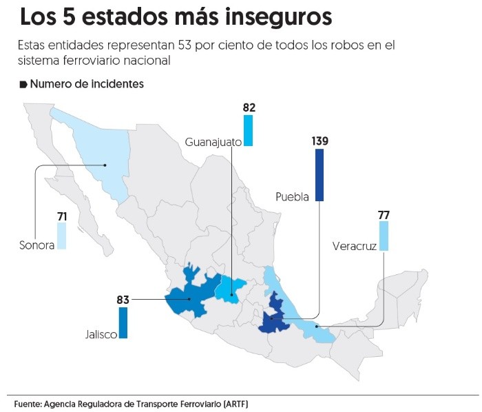 En el primer trimestre de 2018 se reportó un robo al sector ferroviario cada 2.5 horas, muy por encima de lo registrado en igual periodo del año pasado, cuando se tuvo un incidente cada 17 horas, según datos de la Agencia Reguladora de Transporte Ferroviario (ARTF). Esta alza en los asaltos, según directivos y representantes industriales, influye en parte en las tarifas de transporte ferroviario que ponen las compañías en el país, los cuales se elevaron entre 4.5 y 13.4 por ciento en los últimos dos años, dependiendo la carga y la empresa, según las listas de la Agencia Reguladora de Transporte Ferroviario. Iker de Luisa, director general de la Asociación Mexicana de Ferrocarriles (AMF), comentó que alrededor del 3 por ciento de los costos de operación de seguridad y que además van en aumento cada año. “Es la tendencia invertir más en seguridad en todos los métodos de transporte, el ferrocarril es un sistema muy tecnificado, entonces tenemos un énfasis en seguridad y eso también está en los costos”, explicó el directivo. Grupo México Transportes informó el viernes pasado que entre abril y mayo del presente año sus subsidiarias Ferromex y Ferrosur registraron siete descarrilamientos –algunos calificados como actos de sabotaje para robo–, que dejaron pérdidas por 312 millones de pesos. De esta cantidad, 130 millones son por ventas perdidas de la empresa y 11 millones en sustracción de bienes de los trenes. Cleantho de Paiva Leite, director de desarrollo de negocios y relaciones institucionales de Braskem Idesa, firma propietaria del complejo petroquímico más grande de México, Etileno XXI, dijo que los robos generaron un aumento en el costo de las pólizas de seguros. “Normalmente los clientes deben comprar seguros para los materiales que mueven por tren, el costo de las primas se elevó sustancialmente en el último año y sólo una pequeña parte de ese gasto lo cubren las ferroviarias, casi todo lo ponen los clientes”, explicó. También los bloqueos en las vías durante días por culpa de sabotajes generan que las empresas modifiquen sus planes de producción. Al respecto, Eduardo Solís, presidente de la Asociación Mexicana de la Industria Automotriz (AMIA), afirmó en conferencia de prensa que estos incidentes provocan que las armadoras de vehículos modifiquen sus periodos de producción, afectando su capacidad.