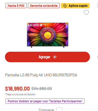 Con la llegada de la campaña de Julio Regalado, Soriana dio inicio a una temporada de promociones, descuentos exclusivos y precios bajos tanto en sus puntos de venta físicos como en su página web.Durante este periodo, los consumidores pueden aprovechar para adquirir diversos productos más baratos o con mayores facilidades de pago en diversos departamentos, como lo son electrodomésticos, papelería, abarrotes, vinos y licores, entre otros.Este equipo ofrece una experiencia visual envolvente con imágenes ultranítidas y colores vibrantes. Sus características otorgan un realismo excepcional en cada escena.Precio: De 26 mil 890 pesos a 19 mil 490.Características:Precio: de 34 mil 990 a 18 mil 990CaracterísticasEsta pantalla ofrece una experiencia visual de alto nivel gracias a su procesador α5 4K con inteligencia artificial de sexta generación.Precio: de 17 mil 990 pesos a 12 mil 990CaracterísticasGracias a su tecnología Pure Color, este equipo ofrece una experiencia visual envolvente.Precio: de 29 mil 990 a 18 mil 990 pesos.CaracterísticasCon una resolución de 3840 x 2160 píxeles, esta Smart TV ofrece imágenes nítidas, colores vibrantes y detalles realistas.Precio: de 11 mil 990 a 8 mil 990 pesos.Características:Recuerda que estas promociones solo estarán vigente durante un periodo de tiempo limitado. * * * Mantente al día con las noticias, únete a nuestro canal de WhatsApp * * *MB