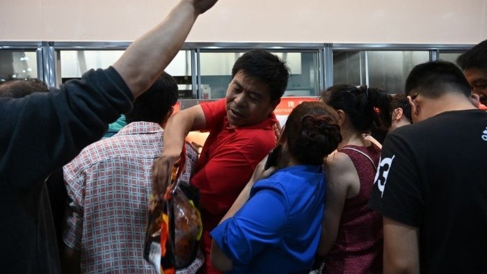 La primera tienda de la cadena estadounidense Costco en China debió cerrar sus puertas antes de lo previsto el día de la inauguración por la multitud que invadió el establecimiento y arrasó con sus productos.Además de las extensas filas, las imágenes muestran batallas campales por un pedazo de pollo asado o por porciones de carne.Debido al caos que se vivió dentro del enorme local, inaugurado esta semana en Shanghái, los administradores decidieron cerrar la tienda antes del horario establecido debido al "congestionamiento por multitud".El éxito de Costco en China se registra al tiempo que otras tiendas extranjeras luchan por competir con las marcas locales.Y también en un contexto de tensión creciente entre EE.UU. y China, por la guerra comercial que enfrenta a ambas naciones.Costco es una reconocida cadena de almacenes de gran superficie donde se vende un amplio rango de productos, desde alimentos hasta electrodomésticos, y hay que ser miembro para poder comprar en ella.De acuerdo a la agencia de noticias Xinhua, algunos de los que ingresaron a la tienda debieron esperar hasta dos horas para pagar por sus compras, mientras que otros demoraron hasta tres horas para estacionar sus vehículos.Las imágenes muestran a los clientes abalanzándose sobre los productos, muchos de los cuales se acabaron en pocos minutos."Debido a la multitud en el local y con la idea de tener una mejor experiencia de compra, Costco estará cerrado de manera temporal en la tarde de este martes 27 de agosto. Por favor abstenerse de viajar hacia el almacén", se pudo leer un comunicado enviado a través de la app de la empresa, de acuerdo a la agencia de noticias AFP.La policía de Shanghái emitió el siguiente comunicado en la red social china Weibo: "Por su seguridad, esperamos que los ciudadanos que quieran ir a Costco puedan mantener una actitud racional sobre el consumo y evitar salir durante las horas pico. Aquellos que ya han ido allí, deben seguir las órdenes".Desde 2014, Costco ha estado presente en China con una tienda virtual gracias a su sociedad con el gigante del comercio electrónico Alibaba.La inauguración de la primera tienda física de la cadena coincide con la retirada de otras marcas del amplio mercado chino, debido al fracaso de sus negocios.A principios de este año, Amazon anunció que iba a reducir sus operaciones en China, mientras que la cadena de almacenes franceses Carrefour aceptó vender el 80% de sus negocios en el país asiático por pérdidas.Otra marca que tampoco ha podido alcanzar el éxito en China ha sido la cadena británica Tesco."Hay un gran potencial de mercado para Costco en China, ya que su estrategia de valor por dinero es atractiva para muchos consumidores de clase media", le dijo Michelle Huang, analista de Rabobank en Shanghái a la cadena CNN."Si Costco puede tener éxito a largo plazo depende de qué tan bien pueda adaptarse al dinámico panorama minorista de China", agregó.***Recuerda que puedes recibir notificaciones de BBC News Mundo. Descarga la última versión de nuestra app y actívalas para no perderte nuestro mejor contenido.¿Ya conoces nuestro canal de YouTube? ¡Suscríbete!