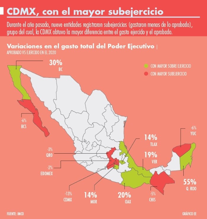 Pese a que el 2020 fue el año en que inició la pandemia de COVID-19, las entidades federativas no modificaron sus prioridades presupuestales acorde a la coyuntura de la crisis de salud, por lo que se propició un mal uso de los recursos públicos, reveló el Informe Estatal del Ejercicio del Gasto (IEEG) del Instituto Mexicano para la Competitividad (Imco).De acuerdo con el estudio, los gobiernos estatales gastaron menos que en años anteriores, y el 2020 significó la menor variación entre lo proyectado y lo ejercido de recursos presupuestales desde que se elaboró el IEEG del Imco.En esta sexta edición se identificó que las 32 entidades gastaron 5% más de lo aprobado por los Congresos locales, mientras que en el 2019 la diferencia fue de 7%, en el 2018 de 15%, en el 2017 de 17%, en el 2016 de 14% y en el 2015 de 12 por ciento.“Podemos ver cómo han gastado conforme pasan los años, en el 2017 se gastó más de lo presupuestado. Si revisamos a cada entidad federativa, realmente veremos que traen una gran variedad de números y respuestas para la pandemia”, señaló el director de Instituciones y Gobernanza del Imco, Francisco Varela.Sobre este punto, la directora del Imco, Valeria Moy, recordó que por años los gobiernos subnacionales han ejercido más recursos de lo que los Congresos locales les han aprobado; pese a ello, acotó que se estimaba que con la llegada de la pandemia los estados podrían ejecutar sus recursos de manera diferente, que se diera una reconfiguración, pero “no se detectó un reordenamiento en las prioridades”.En línea con esta disparidad entre estados y estrategias hacia la pandemia, el IEEG detalló que los Estados gastaron 2% menos en salud en comparación con el 2019. Otros recortes se dieron en educación (-2%) y seguridad pública y justicia (-6 por ciento).Por el contrario, las entidades ejercieron más de lo presupuestado en traslados y viáticos de funcionarios públicos; sobresale el caso de Guerrero (ejerció más de 902% para este rubro), Nuevo León (87%), Baja California (39%) y Tamaulipas (36 por ciento).“En promedio, los Estados destinaron 34% de sus recursos a educación, 14% a salud y 9% a seguridad pública y justicia en el 2020. El resto de los recursos se destinaron a otras partidas como turismo, transporte, comunicaciones, ciencia, y protección ambiental”, se lee en el reporte.También sobresale que las entidades federativas en el 2020 tuvieron un excedente en los ingresos recaudados, 7% más de lo estimado (144.764 millones de pesos más).“Los Estados subestiman sus ingresos porque aquellos ingresos excedentes pueden gastarlos de forma discrecional. Las finanzas públicas estatales tienen grandes deficiencias en su planeación presupuestal. Esto sucede ya que una vez aprobados los presupuestos y las leyes de ingresos, los congresos locales se desentienden de su cumplimiento”, advirtió el IEEG.ObjetivosEl coordinador de Gobierno y Finanzas del Imco, Manuel Guadarrama, señaló que los objetivos del IEEG son analizar el cumplimiento contable de las entidades, que reporten sus gastos con lo que se fomenta el cumplimiento de la Ley General de Contabilidad Gubernamental, así como verificar la homologación y armonización de la información del ejercicio del gasto. También se buscan los sectores que tienen prioridad para los gobiernos locales con la ejecución del gasto público, por medio del análisis de la composición y las variaciones del gasto a lo largo del ejercicio fiscal.De acuerdo con Manuel Guadarrama, este año los gobiernos estatales cumplieron con la Ley General de Contabilidad Gubernamental en un promedio de 87% para reportar sus gastos del 2020, que también significó nueve puntos porcentuales por encima de la edición pasada.“Nueve entidades cuentan con un cumplimiento que supera 95% (Guanajuato, Jalisco, Quintana Roo y Yucatán con 100%); por el contrario, cuatro Estados cuentan con un cumplimiento inferior a 70 por ciento. Chihuahua es la entidad con el menor puntaje obtenido en la evaluación (58%)”.PropuestasAnte el comportamiento que presentaron las entidades federativas, ese instituto de investigación en política pública recomendó generar más mecanismos de participación ciudadana, ya sea con la conformación de consejos consultivos en materia de planeación y ejercicio del gasto, los cuales deben analizar la información de los informes trimestrales para detectar variaciones injustificadas entre los montos aprobados y los ejercidos en las partidas de gasto.En tanto, para mejorar la calidad de la información financiera el Consejo Nacional de Armonización Contable debe eliminar el margen de interpretación en la normatividad, particularmente en el periodo de comparabilidad y la consolidación de información del ejercicio de recursos públicos de cada poder estatal.