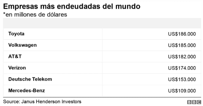 Un balance saneado y unas cuentas en equilibrio suelen ser el objetivo de cualquier actor económico: de un Estado, una empresa o incluso una familia.Estar endeudado en exceso es, a fin de cuentas, una manera de poner en riesgo la salud de las finanzas.Sin embargo existen compañías y grandes conglomerados que necesitan pedir prestado de forma constante para poder seguir con su negocio.Es el caso sobre todo de empresas intensivas en capital como las petroleras, que antes de sacar el crudo del subsuelo, llevan a cabo decenas de exploraciones para encontrarlo. Tienen que invertir mucho.O de las marcas de coches en constante innovación para fabricar mejores motores o carros más seguros ante un accidente.Otras como las farmacéuticas, invierten años para desarrollar nuevos medicamentos.Si miramos el caso de Netflix, antes de poder llenar de series y películas la plataforma de streaming, tiene que pagar actores, productores, guionistas…."Netflix continuó aumentando sus préstamos para financiar la creación de contenido, aunque su balance es mucho más saludable hoy que en el pasado, como lo demuestran las calificaciones crediticias superiores", dice un estudio de la firma Janus Henderson Investors.Y para todo ello, se necesita dinero. Mucho.No es casualidad que las 10 empresas más endeudadas del mundo, según el informe de Janus Henderson, pertenezcan a sectores donde es necesario realizar mucha investigación, donde innovar es clave o donde la competencia es feroz.En los primeros puestos del ranking encontramos a las empresas automotrices Toyota y Volkswagen con una deuda neta en 2021 de US$186.000 millones y US$185.000 millones, respectivamente.Les siguen tres proveedores de telecomunicaciones AT&T, Verizon y la alemana Deutsche Telekom con US$182.000 millones, US$174.000 millones y US$153.000 millones de deuda cada una.Por comparar, estas cifras son similares a la de toda la deuda pública de Noruega en 2021 (US$176.000 millones) o a la de Colombia (US$171.000 millones) en el mismo año.En el puesto número 6 encontramos otra marca de carros muy conocida: Mercedes-Benz, que el año pasado tenía US$109.000 millones de deudas pendientes en su balance general.Si miramos por países, las empresas de México acumulan US$36.000 millones en deudas, mientras que las de Colombia debían hasta junio de este año unos US$20.000 millones.Las de Chile, US$12.000 millones."Las empresas de los mercados emergentes deben relativamente poco, lo que refleja condiciones económicas más volátiles", dicen los analistas de Janus Henderson, Seth Meyer y Tom Ross.Pero aunque la deuda siempre indica la salud financiera de una empresa, tener mucha no es necesariamente negativo.Hay sectores industriales, como los fabricantes de autos o las empresas de telecomunicaciones, que necesitan mucho capital para funcionar."Las compañías necesitan pedir dinero en préstamo porque en muchos sectores las empresas tienen la necesidad de crecer. La inversión siempre requiere financiación, que puede ser vía más capital, dinero de los socios o préstamos", explica a BBC Mundo Pedro Aznar, Profesor del Departamento de Economía, Finanzas y Contabilidad de la escuela de Negocios ESADE.Para el profesor, la deuda es una buena opción siempre que la rentabilidad esperada de la inversión supere al coste de la deuda, algo que ha sido frecuente en algunos sectores, con tipos de interés tan bajos.Entonces, ¿es malo tener mucha deuda?Todo depende, dicen los expertos, del equilibrio entre el valor de lo que posee una empresa y lo que debe."Es una cuestión relativa. La deuda se puede poner en relación al total de los activos de la empresa, al valor de todo lo que tiene. Si una empresa tiene activos que pueden perder valor, o de valor volátil, la deuda es un riesgo", afirma Aznar."Pero si una empresa tiene activos con valor seguro que respaldan su deuda, un cierto endeudamiento no es negativo: al contrario, permite crecer, y también aumentar la rentabilidad", añade.Y dado que estas cifras son del último año fiscal, es probable que en el nuevo entorno económico las empresas comiencen a ser más conservadoras en la forma de financiarse.Si los beneficios caen, devolver los préstamos puede ser más complicado.Y una subida de tipos -como estamos viendo estos meses- también afecta, ya que los intereses de la deuda suben y eso daña los resultados."El hecho de tener que pagar intereses y principal al vencimiento hace que la deuda sea más riesgosa que el capital como fuente de financiación para la empresa", dice Pierre Verlé, responsable de deuda corporativa de la firma de inversión Carmignac."El crecimiento económico mundial más lento, incluidas las recesiones en algunas partes del mundo, está haciendo que las empresas se vuelvan más cautelosas", estiman Meyer y Ross.--------------------------------------------------------------------------------Ahora puedes recibir notificaciones de BBC Mundo. Descarga la nueva versión de nuestra app y actívalas para no perderte nuestro mejor contenido.¿Ya conoces nuestro canal de YouTube? ¡Suscríbete! OA
