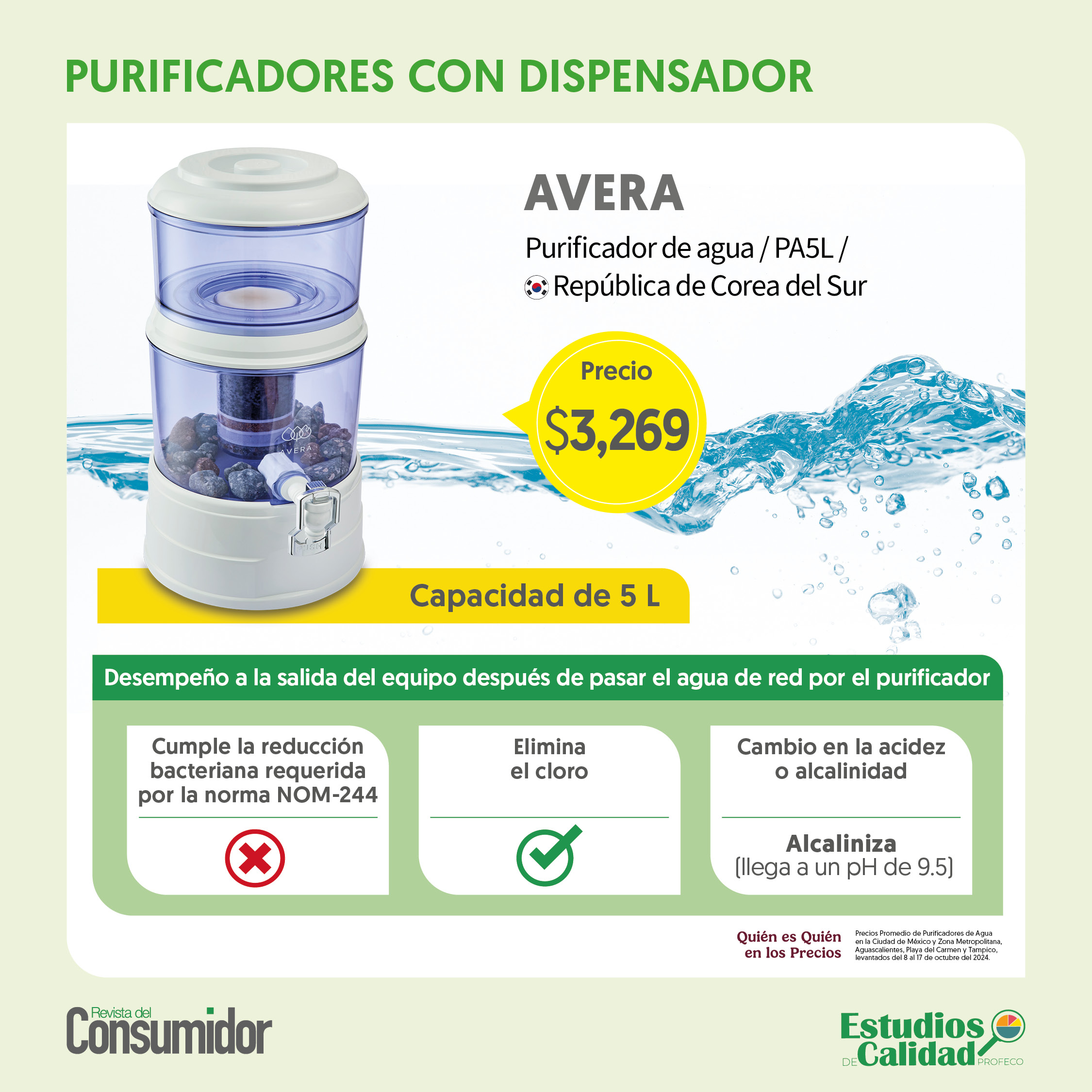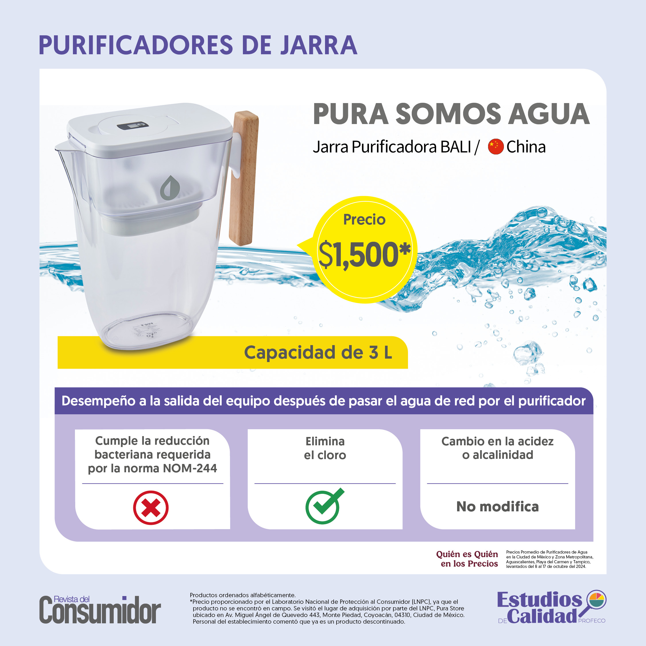 El agua es indispensable para la vida humana. Un cuerpo humano no funciona sin este líquido vital; de acuerdo a la Organización Mundial de la Salud (OMS), el agua es esencial para el cuerpo humano en cualquier etapa de la vida. El Gobierno de México, por su parte, recomienda consumir de 2 a 3 litros de agua diariamente aunque las necesidades pueden variar de acuerdo a edad, sexo, dieta y tipo de actividad física.El cómo bebemos agua depende de individuo a individuo. Una de las muchas maneras de consumo es por medio de purificadores de agua, máquinas con filtros que se encargan de remover las bacterias y "purificar" el agua de la llave, para volverla apta al consumo humano. Pero, ¿qué tan confiables son estos aparatos? ¿De verdad purifican el agua? ¿Es cierto que le quitan las bacterias? En su más reciente estudio de calidad, la Procuraduría Federal del Consumidor (Profeco) Profeco analizó cinco purificadores de agua que son populares en el mercado pero que, no obstante, no cumplen con la reducción bacteriana que requiere la Norma Oficial Mexicana (NOM-244-SSA1-2020) que "evalúa la eficiencia en reducción bacteriana en equipos y sustancias germicidas para tratamiento doméstico de agua". ¿Qué implica esto? Los productos que no cumplen con las Normas Oficiales Mexicanas pueden ser sujetos a medidas precautorias y sus proveedores a requerimientos y, en su caso, a procedimientos por infracciones a la ley.Para consultar el estudio completo de la Profeco, es posible consultar la revista oficial aquí. FS