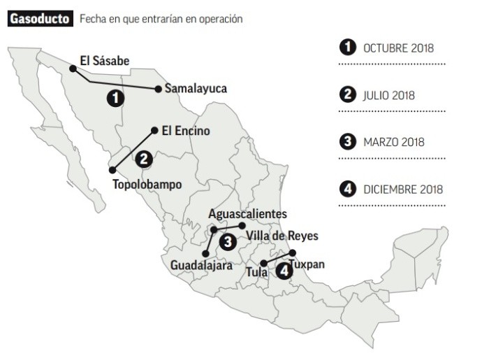 Al menos cuatro gasoductos presentan retrasos importantes que pondrán en aprietos al suministro de gas natural a México para el siguiente año, obligando a que las importaciones de gas natural licuado, que cuesta casi tres veces más que el Henry Hub estadounidense, sigan en aumento. De acuerdo con S&P Platts, el gasoducto El Encino-Topolobampo, que construye Transcanada, debió estar listo desde julio de este año, sin embargo, no verá la luz hasta la segunda mitad de 2018; lo mismo que el de Tula-Tuxpan, de la misma empresa, y que iniciará operaciones hasta diciembre del siguiente año. El segundo proyecto es el gasoducto Villa Reyes-Aguascalientes-Guadalajara, que Fermaca le construye a la CFE, y que debió entrar en operaciones a inicios de este año, pero que comenzará a operar apenas durante los primeros meses del año que viene. Samalayuca-El Sásabe es otro de los gasoductos que presenta retrasos en su construcción por parte de Grupo Carso para la CFE, de acuerdo con la firma de análisis energético en información compartida a El Financiero, pues debió entrar en operaciones en este mes de noviembre, pero realmente lo haría hasta octubre de 2018. Al respecto, Javier Díaz, director de análisis y consultoría de Energía S&P Platts, comentó que “por estos problemas de retrasos ha habido un repunte en importaciones de gas natural licuado, en algunos casos, incluso, ha sido imposible importar más de Estados Unidos”, comentó. Como referencia, el precio del gas natural licuado, que entra a México por las tres terminales regasificadoras que existen en Manzanillo, Altamira y Ensenada, está por arriba de los 8.1 dólares por millón de BTU, mientras que el gas natural del Sur de Estados Unidos apenas toca los 2.9 dólares por millón de BTU. “La capacidad de importación está saturada, y esperamos que siga siendo una limitación en el downstream hasta finales de 2018”, comentó Díaz en entrevista. En total las importaciones de gas natural de Estados Unidos tocarán, de acuerdo con la firma de análisis, los 4.08 mil millones de pies cúbicos diarios en promedio durante todo 2017, 10 por ciento por encima de los 3.7 mil millones de pies cúbicos diarios de 2016. Al respecto, Ramsés Pech, analista de Caravia y Asociados, comentó que en el caso específico de l ducto de Tula-Veracruz el problema ha sido que no se puede contar aún con los derechos de vía, en los demás casos, señaló que los retrasos se deben a modificaciones en la planeación financiera de los proyectos. Así, afirma, el país tendrá que continuar, al menos durante el siguiente año, con el alza en importaciones de gas natural licuado. “El producto entre más lejos de los centros se producción esté donde se concentra para consumir más caro”, comentó. INDICADORES DE PEMEX La producción de crudo en México de Pemex salió en octubre desde un mínimo de 37 años registrado en septiembre, al aumentar 9.9 por ciento frente al mes previo, de acuerdo con cifras reveladas el viernes por la petrolera. Según los datos oficiales, durante el décimo mes del año se produjeron 1.9 millones de barriles diarios, cifra por arriba de los 1.73 millones registrados el mes previo. El incremento de octubre rompe una racha negativa de cuatro meses a la baja en la producción de petróleo, sin embargo, se mantiene cerca de niveles mínimos en casi cuatro décadas. En contraste, la producción de gasolinas de la empresa productiva del Estado cayó 2.04 por ciento, con lo que se ubicó en 48 mil barriles diarios, un nuevo mínimo histórico, que se suma a otros tres récords registrados en 2017 Por otra parte, la producción de gas licuado cayó 3.28 por ciento, mientras que la de etanol subió 3.26 por ciento.