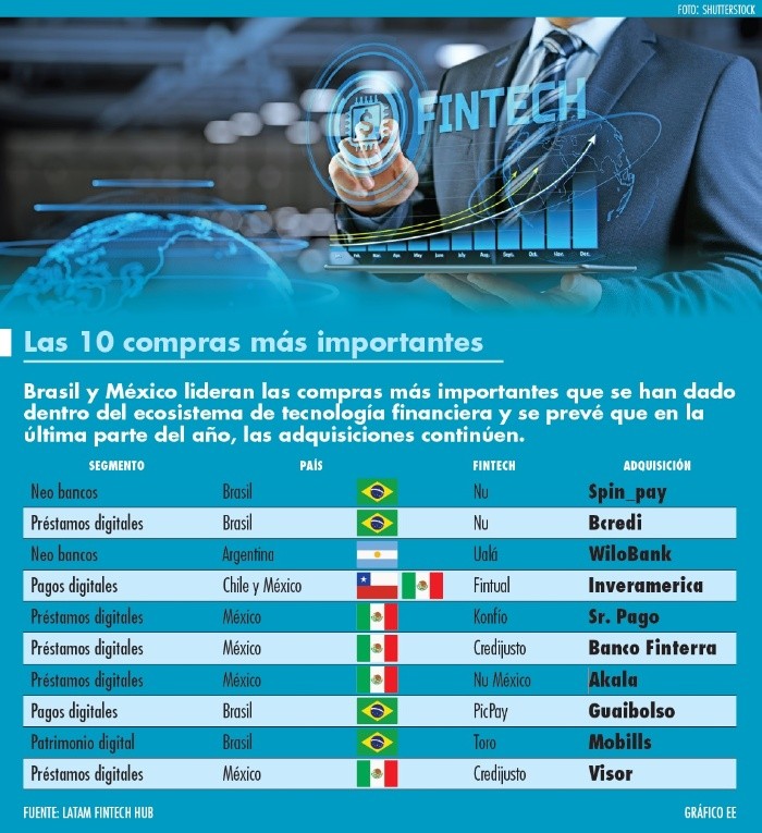 Durante el 2021, las plataformas de tecnología que ofrecen servicios financieros han estado activas respecto a adquisiciones de otras empresas para hacer crecer su negocio, incluso se han atrevido a adquirir entidades bancarias para tener una mayor profundidad en el mercado.De acuerdo con un análisis de la firma Latam Fintech Hub, en el transcurso de este año se han contabilizado 22 operaciones de tecnológicas inmersas en los servicios financieros que adquieren alguna entidad para hacer crecer su negocio y tener mayor profundidad, entre las que destacan cuatro realizadas por entidades que operan en México.“Las fintech de América Latina están de compras. La región está viviendo un nuevo boom de fusiones y adquisiciones, impulsado por los segmentos de neobancos, crédito digital y wealthtech (manejo de patrimonio por medio de la tecnología)”, destaca el análisis.Según el registro, en estas 22 operaciones destacan la adquisición de Nu México, filial del gigante brasileño Nubank; de la sociedad financiera popular (sofipo) Akala, así como las dos compras de Credijusto de Banco- Finterra y de la plataforma de análisis de datos Visor. También resalta la adquisición por Konfío de la empresa de medios de pago Sr. Pago.Con estas operaciones, las plataformas han podido crecer su negocio. Por ejemplo, en el país, Fintual, que opera bajo la figura de asesor en inversiones, adquirió una operadora integral de fondos de inversión de nombre Inveramérica y así pasó de administrar activos por 550 millones de dólares a 650 millones de dólares entre México y Chile.“Buscamos crecer en producto; por ejemplo, con planes para el retiro y crecer en calidad de producto. Obviamente venimos de hacer unas pruebas a principio de año, pero nos falta, nuestro objetivo es que el producto sea lo más similar como lo es en Chile y nuestro trabajo será ampliar los beneficios para la inversión”, explicó en su momento Omar Larré, cofundador de Fintual.Mayor profundidadEn junio pasado, Credijusto, que opera bajo la figura de sociedad financiera de objeto múltiple (sofom) pero que apalanca su operación con la tecnología y dedicada al financiamiento para el sector de pequeñas y medianas empresas, sorprendió al anunciar la adquisición de Banco Finterra,“Creemos que no es suficiente ser ágil, flexible y tener buena tecnología. El ser banco te permite tener los beneficios y adicionalmente poder ofrecer un buen servicio, ahí es cuando verdaderamente estás atendiendo 100% la necesidad del cliente”, explicó en entrevista en su momento Allan Apoj, director y cofundador de Credijusto.El último gran anuncio al respecto lo hizo Nu México, filial del unicornio brasileño Nubank y que, en México, hasta el momento ofrece una tarjeta de crédito, al adquirir a la sociedad financiera popular Akala, con lo cual podrá captar ahorro del público en general.“Cerrar esta adquisición con la aprobación de la CNBV (Comisión Nacional Bancaria y de Valores) y así poder seguir con nuestros planes de expansión de nuestro portafolio de productos es, sin duda, un hito importante para seguir con nuestro crecimiento de forma sostenible, ordenada y responsable”, detalló en su momento Emilio González, director general de Nu México.Otra de las adquisiciones que se han dado en el mercado mexicano es la de Konfío, empresa dedicada al otorgamiento de crédito para pequeñas y medianas empresas por medio de la tecnología, de la empresa Sr. Pago, que ofrece soluciones para liquidar operaciones.“Estamos muy contentos de traer a Sr. Pago y su equipo a la familia Konfío, brindando así una solución financiera más completa para las compañías en crecimiento, el sector empresarial que más contribuye al desarrollo y al empleo en nuestro país”, señaló en su momento David Arana, cofundador de esta plataforma, que opera bajo la figura de sofom.Las adquisiciones que se han dado durante este año por parte de las instituciones financieras que apalancan su operación en tecnología se han dado por el impulso de capital que han levantado.De acuerdo con Latam Fintech Hub, durante los primeros seis meses del año el sector de tecnología financiera en América Latina levantó 7,599 millones de dólares, en 182 operaciones, de los cuales 6,328 millones de dólares fueron en capital y 1,270 millones en deuda.En este contexto, México se colocó como el segundo país con mayor captación de recursos al levantar mil 072 millones de dólares.Si te interesó esta noticia y quieres saber más, entonces descarga y descubre INFORMAPlus, la aplicación digital de EL INFORMADOR, en donde tenemos contenidos exclusivos, seleccionados por nuestros editores, para darles una experiencia más completa a los lectores.Descarga la aplicación y pruébala GRATIS por treinta días.Para iOS: https://apple.co/35jaVgbPara Android: https://bit.ly/3gwVSEVSi eres suscriptor de EL INFORMADOR tu acceso está incluido, solicítalo al 33 3678-7777.