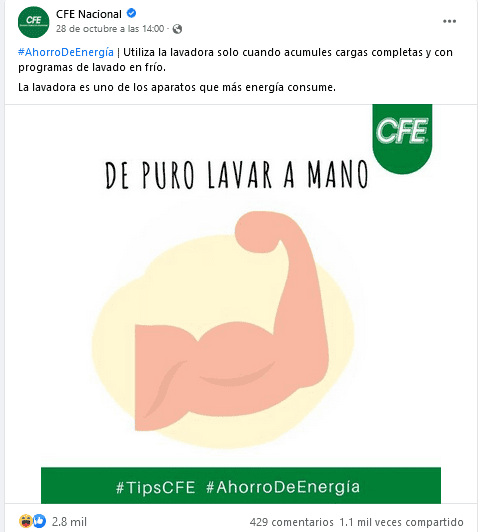 La Comisión Federal de Electricidad (CFE) sugirió en su cuenta de Facebook lavar la ropa a mano para ahorrar electricidad, tema que desató una ola de críticas en los comentarios de la publicación.La Comisión dijo que la lavadora es uno de los aparatos que más energía consume, por eso se debe utilizar solo cuando acumules cargas completas.En los comentarios, los usuarios cuestionaron a la CFE si su publicación era una "broma", pues una de las internautas dijo: "yo tuve la lavadora descompuesta como dos meses y me llegó más de luz".Otra usuaria le dijo a CFE: ¿Sabes que sería realmente útil? Apoyo a instalación de paneles solares y sistemas eólicos... como su programa de los refris... ir pagando en cómodas mensualidades junto con el recibo. Porque es obvio que el becario que hizo esta publicación en su vida ha lavado a mano".Pese a los comentarios, la empresa productiva del Estado no desistió en seguir publicando "consejos" para cuidar y ahorrar luz.Otros seguidores de las cuentas de la CFE comentaron que no es tanto el uso.CFE también sugiere no usar tanto la plancha En otra publicación, pero ahora en Twitter, aconsejó que "colgar la ropa en ganchos cuando sale de la lavadora te facilitará plancharla y te permitirá ahorrar electricidad".A esa publicación algunos usuarios hicieron comentarios como: "Se quebraron la cabeza con sus recomendaciones" o "Con tanto apagón de 24 horas si ahorramos".OF