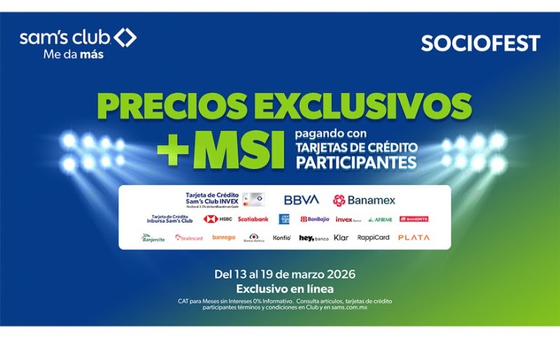 Sam’s Club anunció el lanzamiento de su cuponera SOCIOFEST 2026, una campaña especial de promociones dirigida a sus socios con descuentos en alimentos, bebidas y productos refrigerados de consumo frecuente.
