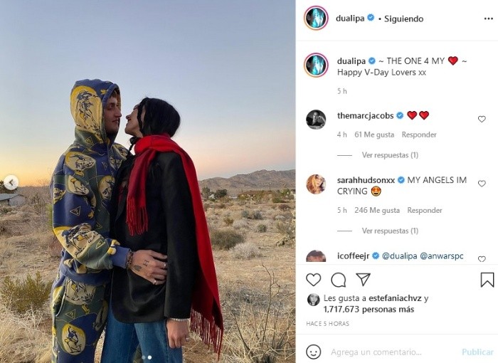 El 14 de febrero es el día más romántico de todo el año y a pesar que este año será diferente, debido a las restricciones de aislamiento ante la pandemia de COVID-19, celebridades no han dejado pasar desapercibido este día y publicaron imágenes con mensajes cursis para su pareja. Dua Lipa compartió dos fotografías donde aparece besando a su novio Anwar Hadid. La modelo y Hadid hicieron oficial su relación en agosto de 2019 y desde entonces han sido inseparables.Ryan Reynolds y Blake Lively son una de las parejas favoritas por los cibernautas. La pareja ha demostrado su amor en las redes sociales con imágenes divertidos. Para celebrar este 14 de febrero el actor de Deadpool compartió un video de Lively divirtiéndose en la nieve."Mi San Valentín para siempre en el futuro previsible", escribió Reynolds.Joe Jonas recordó cuando su esposa Sophie Turner estaba embarazada. El cantante de One Direction comparti una imagen de la actriz acostada en un sillón. "Feliz día de San Valentín para mis 2 San Valentín", escribió.En julio de 2020, la actriz de 24 años de "Game of Thrones" y el cantante de 30 anunciaron la llegada de su bebé.La modelo Gigi Hadid compartió una imagen en blanco y negro junto a su pareja Zayn Malik. "Te amo Valentine y amo el San Valentín que compartiremos siempre", escribió en Instagram.Elsa Pataky celebró el amor de Chris Hemsworth. La actriz compartió una romántica selfie de los dos y escribió: "por siempre y para siempre". La publicación recibió más de 300 mil "me gusta".jb
