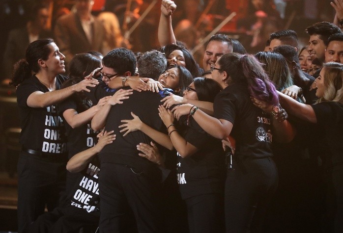 Alejandro Sanz fue reconocido en la ceremonia 18 de los Latin Grammy como Persona del Año.Sanz dedicó el galardón a los "dreamers", inmigrantes indocumentados que llegaron a Estados Unidos cuando eran niños."Esos niños son nuestros niños, son de nuestra comunidad, cuando uno es padre es padre de todos los niños del mundo. Se lo quiero dedicar a ellos y quiero que les den un aplauso muy fuerte. Va por ellos, por Puerto Rico, por México, por República Dominicana, por Florida, va por todos ustedes, los quiero mucho", dijo el cantante español.Después, Sanz interpretó en el escenario de la MGM Grand Garden Arena algunos de sus éxitos como "Cuando nadie me ve", "A lo mejor me lo merezco", "Corazón partío".LEE: "Despacito" se lleva el Grammy Latino a la grabación del añoEn un momento de su presentación, lo acompañaron jóvenes que portaban playeras con la leyenda "We have one dream" (tenemos un sueño). AB.
