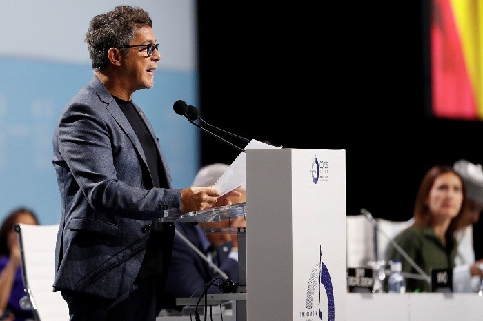El cantante español Alejandro Sanz urgió el martes a la comunidad internacional a no dejar que le "tiemble el pulso" y a actuar contra el cambio climático, en un emotivo discurso en la COP25 de Madrid.Sanz se dirigió a las delegaciones de casi 200 países que este martes iniciaron las negociaciones políticas para avanzar en la lucha contra el calentamiento, en esta reunión anual de la ONU que se prolongará hasta el viernes."Mi intención no es acusar a nadie". "Todos somos culpables del momento crítico en el que nos encontramos", dijo el cantante.Sanz pidió unidad ante una situación que le "aterra" y emplazó a los miembros de las delegaciones ministeriales reunidos en sesión plenaria a hacer un ejercicio de memoria y recordar su niñez."¿Cómo le explicarían al niño que fueron lo que hemos hecho con el planeta que tanto amaban?"."Estamos ante la última oportunidad de hacer realidad el cambio", continuó, asegurando que la sociedad está deseosa de "encontrarse con líderes valientes y a quienes no les tiemble el pulso" a la hora de tomar decisiones que garanticen el futuro del planeta.El artista quiso aportar además su grano de arena, al anunciar en Madrid que realizará un estudio sobre la cantidad de CO2 que emiten sus conciertos para mitigar con "acciones reales" su impacto.Tras haber actuado en España y Estados Unidos, Sanz emprenderá en 2020 una gira por América Latina."Invito a las empresas, a los gobiernos y a ustedes como individuos a comprometerse en este ejercicio de compensar lo que contaminamos". "No perdamos más el tiempo".jb