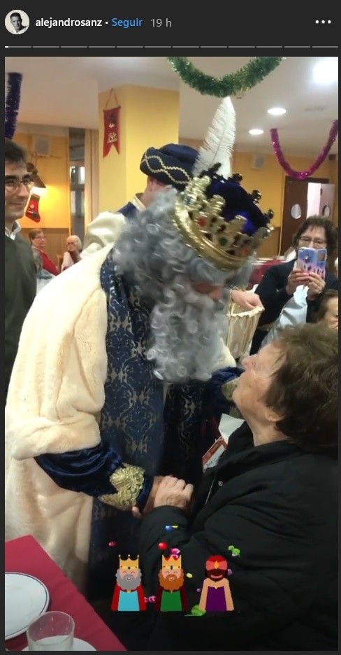 Para las personas que creían que Melchor, Gaspar y Baltazar solo traían regalos a los niños, el cantante español Alejandro Sanz demostró que los Reyes Magos también ven por otras personas, en especial por los abuelitos.A través de su cuenta de Instagram el intérprete de "El Trato" compartió una fotografía de él caracterizado como el rey Melchor, donde luce cabello y barba abultada color gris y apenas se alcanza a ver un pedazo de su corona.La fotografía fue del gusto de más de 210 mil personas y más de seis mil dejaron sus comentarios al cantante de 51 años y uno de ellos fueron los de las mexicanas Thalía, quien puso caras riéndose, y Paulina Rubio, quien escribió "¡Mi rey!".La cantante India Martínez, la actriz Eva González, así como otras celebridades y seguidores del nacido en Madrid, le dedicó su admiración y halagos por esta caracterización.El "rey Melchor" demostró que no solo los niños, sino los adultos mayores, pueden tener una enorme sonrisa con un presente inesperado.Alejandro Sanz compartió imágenes de su encuentro con abuelitos, quienes estrecharon sus manos, intercambiaron algunas palabras y por qué no, le dieron un beso por acordarse de ellos.Algunos también recibieron algunos pequeños obsequios del rey que posteriormente se subió a un carro alegórico desde donde siguió repartiendo dulces para las personas que se encontraban en el lugar.Dicho recorrido duró hasta la noche, hora en que todavía miles estaban ante el "rey" Sanz, quien compartió unas palabras con ellos a la vez que agradeció por su presencia.jb
