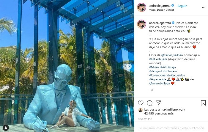 La mañana de este lunes en el programa "Hoy" se presentó a Tania Rincón como su nueva conductora, pero la duda se generó entre los usuarios de redes sociales al ver que Andrea Legarreta no se encontraba en el foro, por lo que inmediatamente se comentó que la expresentadora de "Venga la Alegría" es su reemplazo y de cierta forma tienen razón.Y es que Rincón llegó al programa producido por Andrea Rodríguez debido a que su conductora estrella se encuentra en Miami, por lo que incluyeron a la exAzteca en su emisión de esta semana para que sea el relevo de la esposa de Erik Rubín."Muy buenos días a todos", saludó Galilea Montijo a la audiencia de matutino, "¿están en vivo?, ¿están en vivo?", preguntó la conductora a sus compañeros para luego presentar a Tania Rincón."Miren nada más que belleza de mamá nos acompaña, ella es Tania Rincón... Ya sabes que amamos que vengas, de verdad", aseguró. Y así Rincón dio inicio a su nueva etapa en la televisión mexicana."Y yo los amo a ustedes de verdad. Muy feliz que en estar con ustedes y tan en vivo vinimos que vinimos de la fiesta...", comentó. Durante la bienvenida a la conductora nunca se mencionó cuando Andrea Legarreta regresará al programa conducido también por Raúl Araiza, Andrea Escalona, Arath de la Torre y Lamda García.Mientras tanto, Legarreta ya en su cuenta de Instagram está subiendo imágenes de cómo está pasando unos días en el estado de Florida, Estados Unidos, lo que si no se sabe a la perfección si fue porque se encuentra vacacionando o por un viaje de negocios."No es suficiente con ver, hay que observar. La vida tiene demasiados detalles... Que mis ojos nunca tengan prisa para apreciar lo que es bello, ni mi corazón deje de amar lo que es bueno"."Obra de @xavier_veilhan homenaje a #LeCorbusier (Arquitecto de fama mundial)", escribió la conductora en su primera fotografía.En su segunda imagen, se puede observar a Legarreta posando a lado de una estructura que asemeja un vaso desechable de color rojo gigante apretado en el suelo, el cual es obra de la artista Paula Crown."El arte quita del alma el polvo de la vida cotidiana. #picasso", escribió.jb