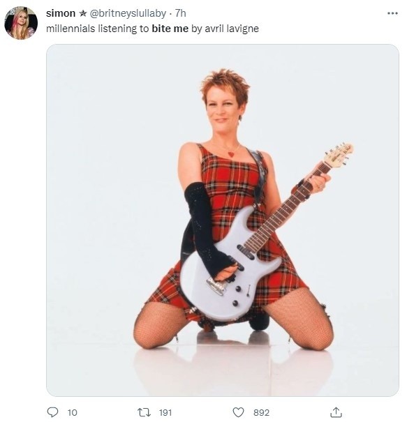 Hace 19 años a Avril Levigne le llamaron la "Princesa del Pop Punk" y la "anti Britney" por su imagen desenfadada, rebelde, con corbata y camiseta sin mangas.La corbata la dejó de usar cuando se dio cuenta que se había convertido en un accesorio de moda, y comenzó a portar ropa usada y arrugada si es que sabía habría fotos."No necesito que me digan qué hacer o cómo actuar", dijo en una entrevista de 2006.Ahora, que ha lanzado un nuevo sencillo titulado "Bite me", casi tres años después de su más reciente álbum, la cantante que recién apagó 37 velas en su pastel de cumpleaños, realza su idea primigenia.Sigue usando delineador en ojos, chamarra punketa, botas arriba de la rodilla y minifalda cuadriculada como si fuera estudiante.Y lanza una advertencia en su cuenta de Twitter, usando un lenguaje que otros de su generación, ya no utilizan."Estoy jodidamente emocionada de lanzar nueva música. Me divertí mucho haciendo este disco. Esto es sólo una muestra de lo que está por venir", escribió sobre su canción, que traducida al español significa "Muérdeme".La semana pasada había dado un adelanto del concepto al subir una foto con sus músicos y donde se puede ver las puntas de su cabello en color rojo y un vestido negro."No voy a usar ropa reveladora que muestre mi trasero, mi vientre o mis senos", dijo en alguna ocasión para MTV.AF