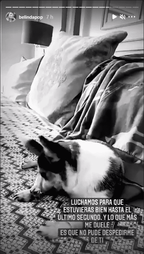 Belinda dio a conocer el triste fallecimiento de su perro “Gizmo”, una “dolorosa” partida pues la cantante no pudo despedirse de él.Fue a través de su cuenta de Instagram, donde la cantante detalló que extrañará mucho a su perro, “su fiel compañero de alegrías y tristezas”.Belinda compartió varias fotografías y videos en sus “historias”, la intérprete de "Ángel" confesó lo triste que se siente por la pérdida de su "viejito", como cariñosamente lo llamaba, y recordó que “Gizmo” la acompañó a lo largo de su carrera, viajaba con él y era su fiel compañero.Belinda posteó un mensaje en el que deja claro que jamás olvidará a su peludo amigo, quien estuvo a su lado durante 13 largos años, y le agradeció por haber estado con ella en sus momentos de soledad, siempre dándole un amor incondicional."La tristeza más grande, se fue mi compañerito, mi ´Gizmo´, mi angelito guardián, 13 años juntos no puedo expresar el dolor que siento en mi corazón, en mi pecho, nunca te olvidaré, gracias por todo lo que me diste, por quitarme la soledad, por darme amor sin pedir nada a cambio, por estar incondicionalmente a mi lado, te amo mi bebé"."No puedo extrañarte más mi Gizmo, siento mi corazón hecho pedazos", finalizó.AC
