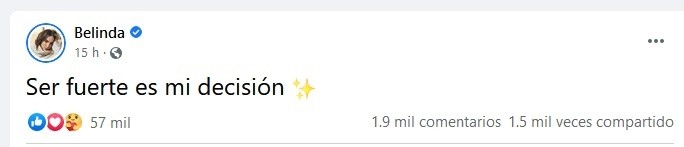 Hay una nueva tendencia en redes sociales por parte de los creadores de contenido y de artistas, la de responder a comentarios ofensivos, a veces con humor, otras con seriedad y otras con sarcasmo, como lo hizo Belinda.Este lunes, Belinda compartió una fotografía en Facebook del programa "La Voz Kids", en donde es coach junto a Maria José, Mau & Ricky y Camilo. En ella aparece posando con sus compañeros ante las cámaras, cada uno con su respectivo look.Ella trae puesto un short con una playera blanca y debajo una fina tela brillante que cubre sus piernas y brazos.Entre los comentarios, una usuaria comentó:"¿De qué disfrazaron esta vez a Belinda?", a lo que la cantante respondió: "Hola Hermosa, ¿todo bien en casa?", generando risas entre los usuarios de la red social.Este solo fue uno de los comentarios que respondió la cantante, algunos con humor y otros con gifs, como a quien le escribió: "canta más chido Danna Paola". Belinda contestó con un gif de un gatito que ve la pantalla sorprendido.En otra publicación, igual en su Facebook, la coach escribió, posiblemente como respuesta a esos haters, "Ser fuerte es mi decisión", recibiendo más de 50 mil reacciones y casi dos mil comentarios de sus seguidores dándole palabras de ánimo.El look de Belinda en el programa de TV Azteca ha dado de qué hablar entre los cibernautas, la semana pasada, un vestido con detalles de la banda de heavy metal Iron Maiden desató una lluvia de memes, críticas y apoyo hacia la cantante, tanto que hasta tomaron una portada de la banda y la adaptaron para que aparezca el nombre de ella y la leyenda "The number of sapito" en lugar de The number of the beast", haciendo alusión a la canción de Belinda en una telenovela.jb