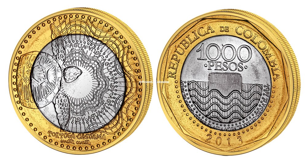 El billete de 50 pesos mexicano ha enamorado al país y seguramente tú o alguno de tus conocidos tiene uno guardado que no cambiaría por nada en la tienda debido a que muchos consideraron que es uno de los más llamativos por su gran diseño con un ajolote, animal que se encuentra en peligro de extinción. Sin embargo, no es la única moneda que hace referencia a un animal marino. En redes sociales se difundió una moneda originaria de Colombia que tiene una "tortuga caguama" y usuarios en la red señalan que es aún más bonita. Tiene un valor de mil pesos colombianos.La moneda comenzó a circular en el año 2012, fue diseñada por el colombiano José Antonio Suárez donde no solamente puso a la tortuga por su belleza, sino que tiene como mensaje principal un llamado a cuidar el agua y también recordando que se encuentra en peligro de extinción.Se puede apreciar que presenta una líneas onduladas continuas que dan como representación las ondas de agua, estas se encuentran desde el centro hacia la circunferencia exterior, además hay unas líneas rectas en sentido radial y una leyenda sobre una franja circular con la palabra "Agua".Un detalle más de la "tortuga caguama" es que se ve como va entrando a las ondas de agua.MF
