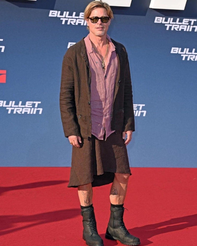 El actor estadounidense Brad Pitt robó miradas luego de aparecer en la premier de su nuevo flm "Bullet Train” (2022) con un llamativo atuendo, que a comparación de otras ocasiones, dividió las críticas de los espectadores e internautas. Pitt, de 58 años, apareció en la alfombra roja con un cárdigan café junto con una camisa color salmón, además del elemento sorpresa: una falda a juego con el suéter, y unas botas militares.Según apunta el portal Pagesix un reportero de la Agencia Associated Press le preguntó al actor sobre su decisión, a lo que él contestó: "La brisa. La brisa", ya que el evento fue celebrado en Berlín y desafortunadamente la temperatura en Alemania se había disparado a mediados de los 90 grados Fahrenheit.