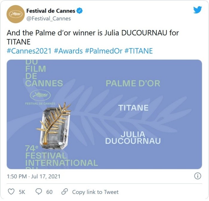 La francesa Julia Ducournau se convirtió este sábado en la segunda mujer en ganar la Palma de Oro del Festival de Cannes, con su filme "Titanio", el más violento y transgresor de la competición.El presidente del jurado, el director estadounidense Spike Lee, anunció el premio de forma accidental, al principio de la ceremonia cuando debía comunicar el galardón a la mejor interpretación masculina. Posteriormente, se disculpó. "Lo siento, metí la pata".Ducournau se alzó así con el máximo galardón, 28 años después de que lo hiciera la neozelandesa Jane Campion por "El piano", ex aequo con "Adiós a mi concubina", del chino Chen Kaige.De 37 años, es además la más joven de los 24 directores en liza de esta edición, la primera que se realiza en tiempos de pandemia."Gracias al jurado por llamar a una mayor diversidad en nuestras experiencias en el cine y en nuestras vidas. Gracias al jurado por dejar entrar a los monstruos", dijo entre lágrimas la directora, muy aficionada a las películas de horror, al recibir la Palma.Junto a Lee, en el jurado de mayoría femenina figuraron entre otros el director brasileño Kleber Mendonça ("Bacurau") y la actriz estadounidense Maggie Gyllenhaal ("The Dark Knight").Radical, excéntrica, la película "Titanio" arranca con un accidente de coche en el que una niña, Alexia, resulta herida de gravedad y los médicos tienen que ponerle una placa de titanio en el cráneo.Años más tarde, la joven, interpretada por la enigmática Agathe Rousselle, siente una atracción sexual por los coches y se vuelve una asesina convulsiva. Como arma, emplea un punzón de madera que recuerda al picahielos de la asesina interpretada por Sharon Stone en "Instinto básico", de Paul Verhoeven."Uno de mis objetivos fue traer el cine de género o las películas 'ovnis' a los festivales generales para dejar de marginar una parte de la producción francesa", había dicho días atrás la directora. "El género también permite hablar del individuo y muy profundamente de nuestros miedos y deseos", añadió.Ducournau ya sacudió Cannes en 2016 con "Crudo", su ópera prima sobre una estudiante de veterinaria que se convertía en caníbal.La francesa se impuso a grandes figuras del séptimo arte, como Wes Anderson, Asghar Farhadi, Paul Verhoeven y Nanni Moretti y desbancó a la gran favorita de la crítica, la japonesa "Drive my car", que se conformó con el premio al mejor guión."Titanio" sucede así a "Parásitos", el thriller tragicómico del surcoreano Bong Joon-ho que arrasó en 2020 en los Óscar.JM